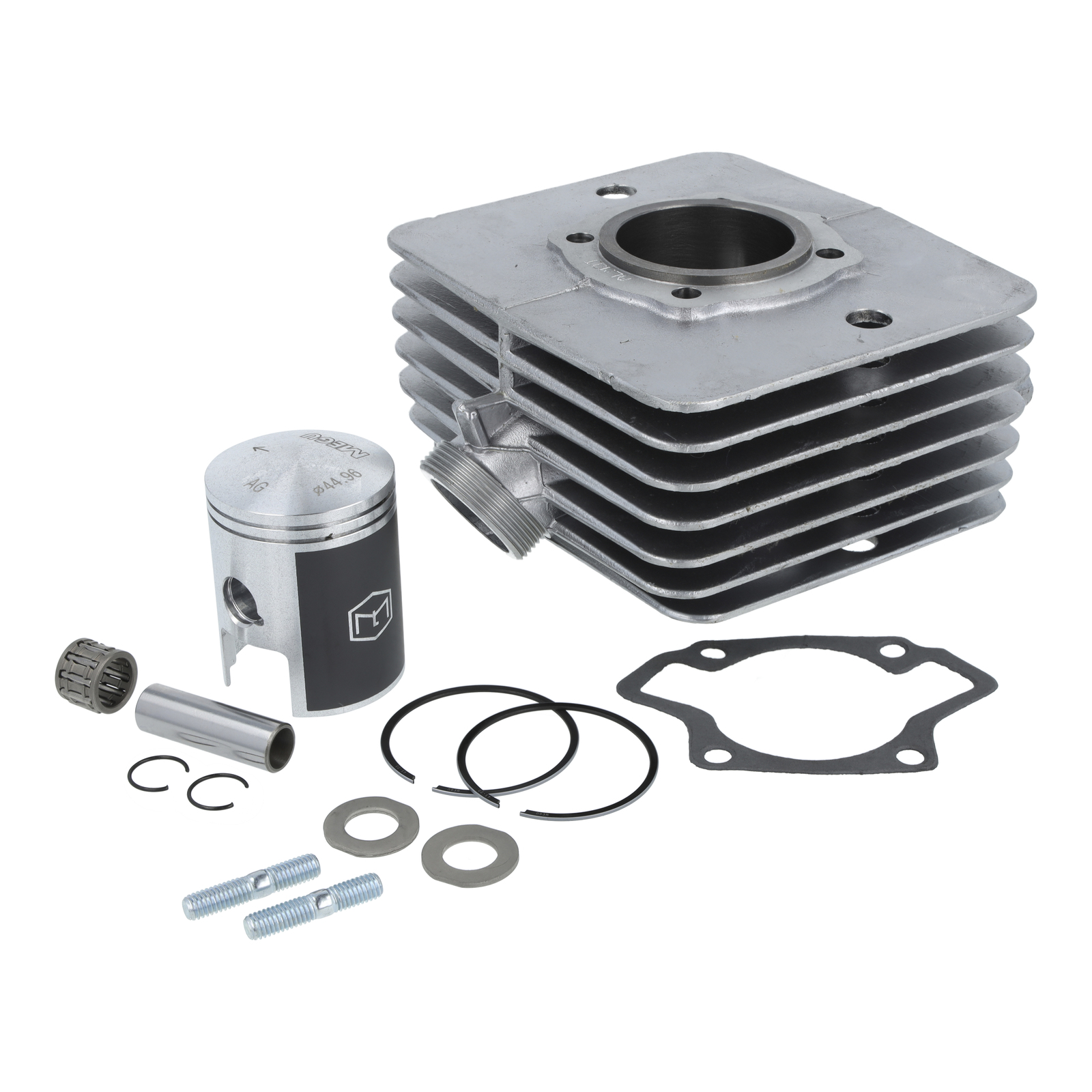 Komplett mit MEGU-Kolben, Nadellager, Anlaufscheiben, Stehbolzen für Vergaserbefestigung, Zylinderfußdichtung.