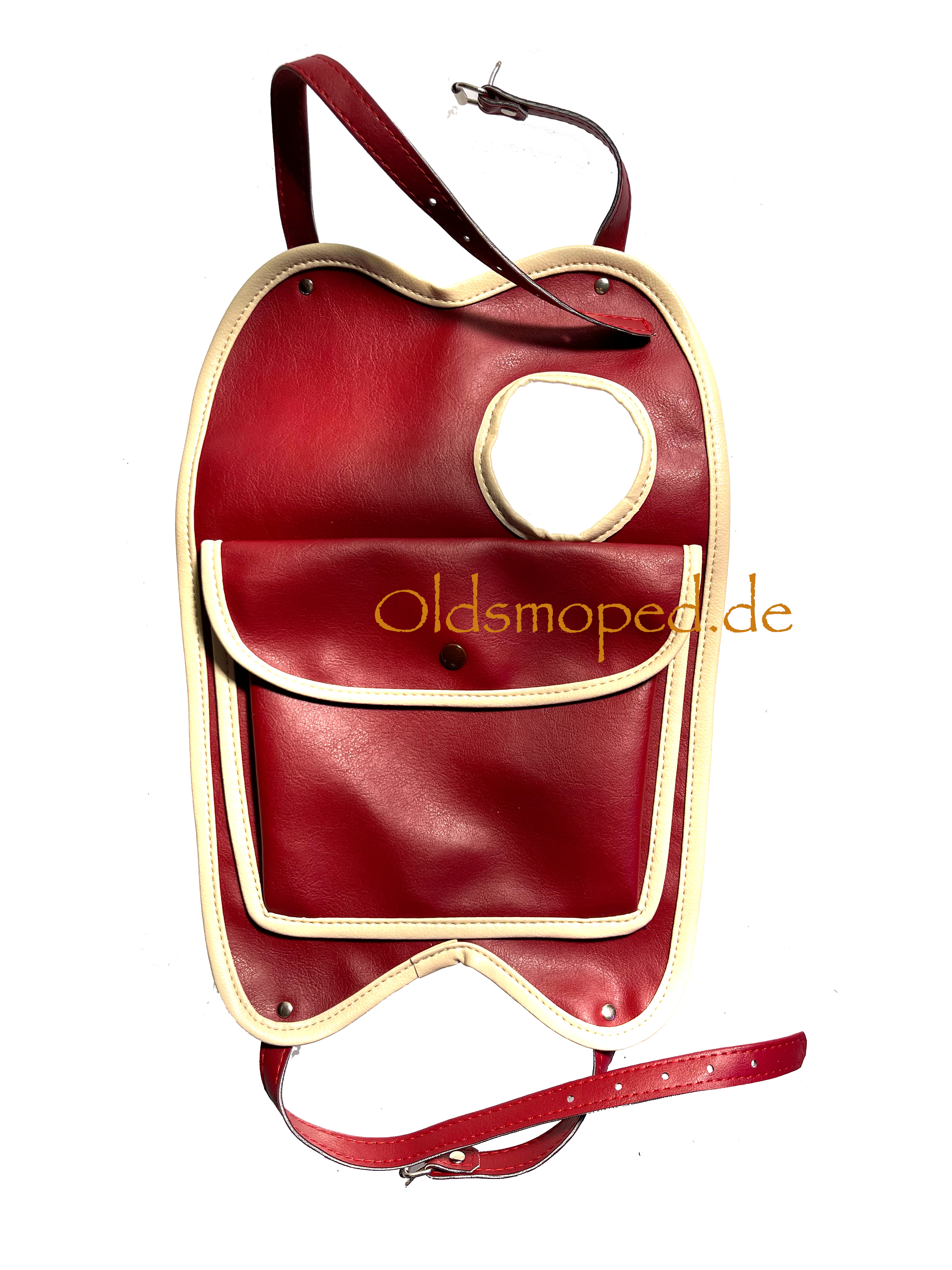 Tankrucksack. Farbe Rot/Beige. Material Kunstleder.