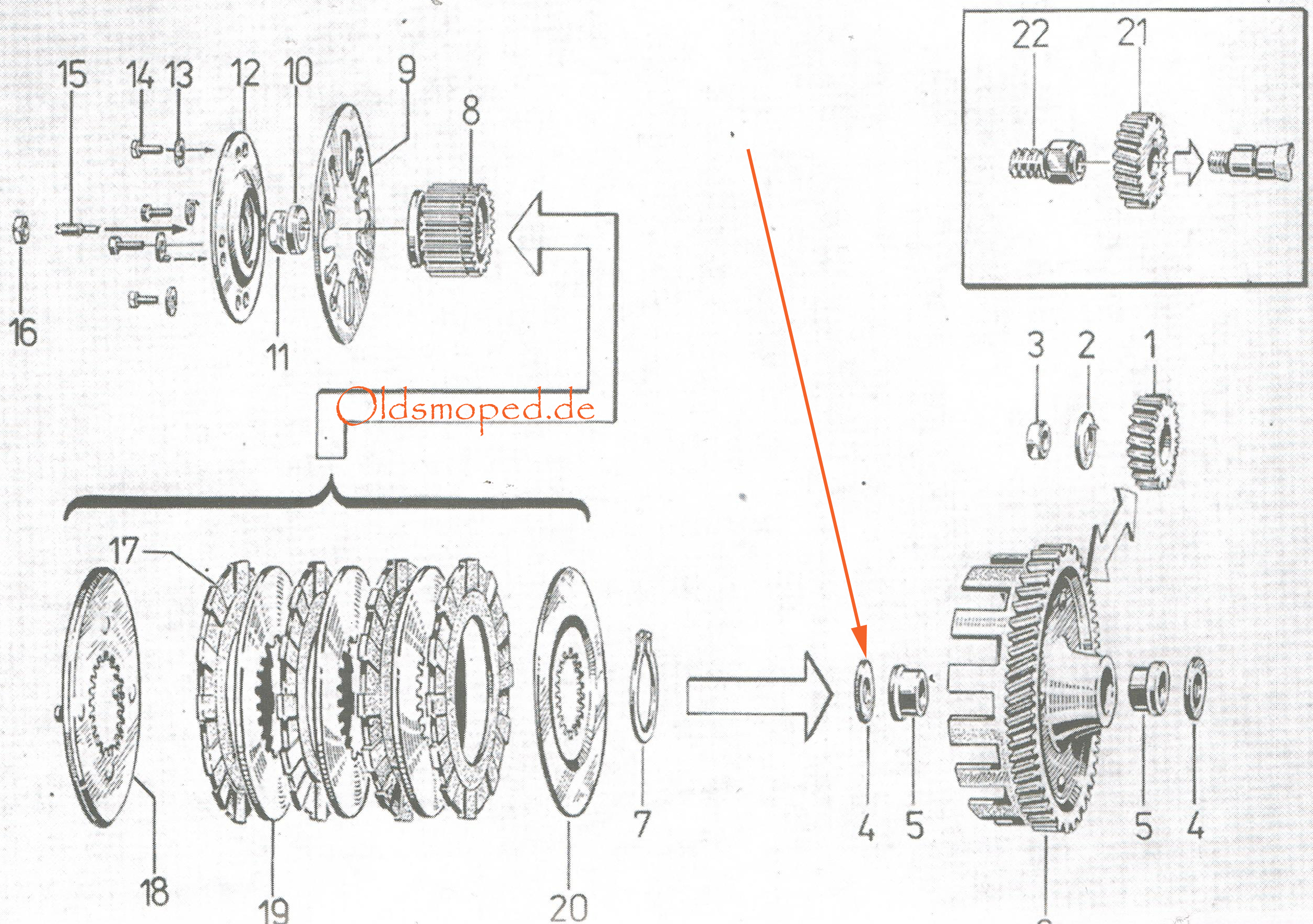Anlaufscheibe für Kupplungszahnrad. Simson Motor M500-M700.