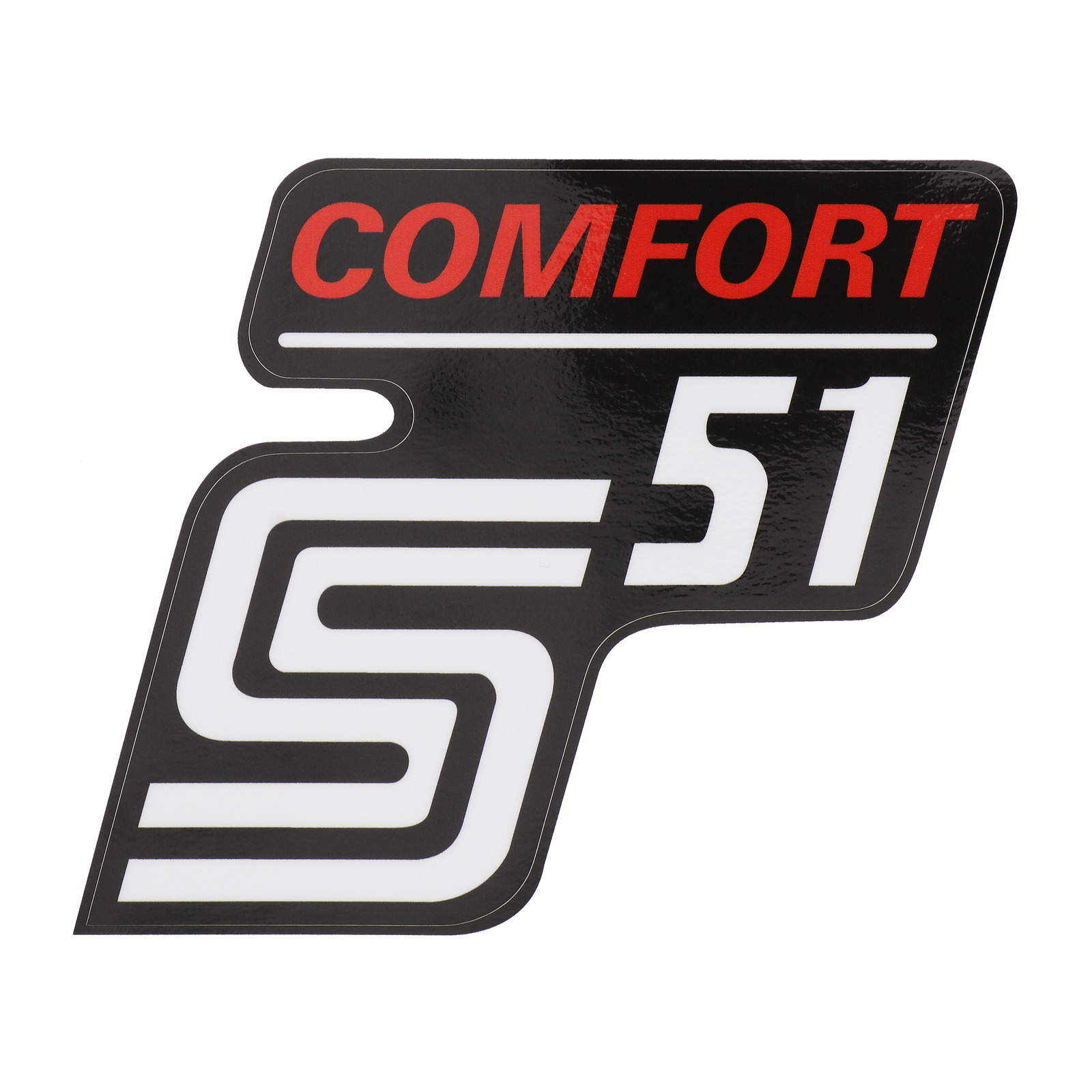 Aufkleber für den Seitendeckel. Klebefolie. Schriftzug Comfort in der Farbe Rot.