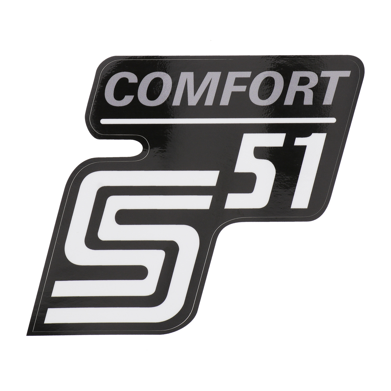 Aufkleber für den Seitendeckel. Klebefolie. Schriftzug Comfort in der Farbe Silber.