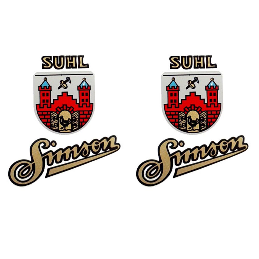 SET Aufkleber. Dünne Klebefolie, mehrfarbig bedruckt. 2 Tankaufkleber mit Suhler Wappen.
