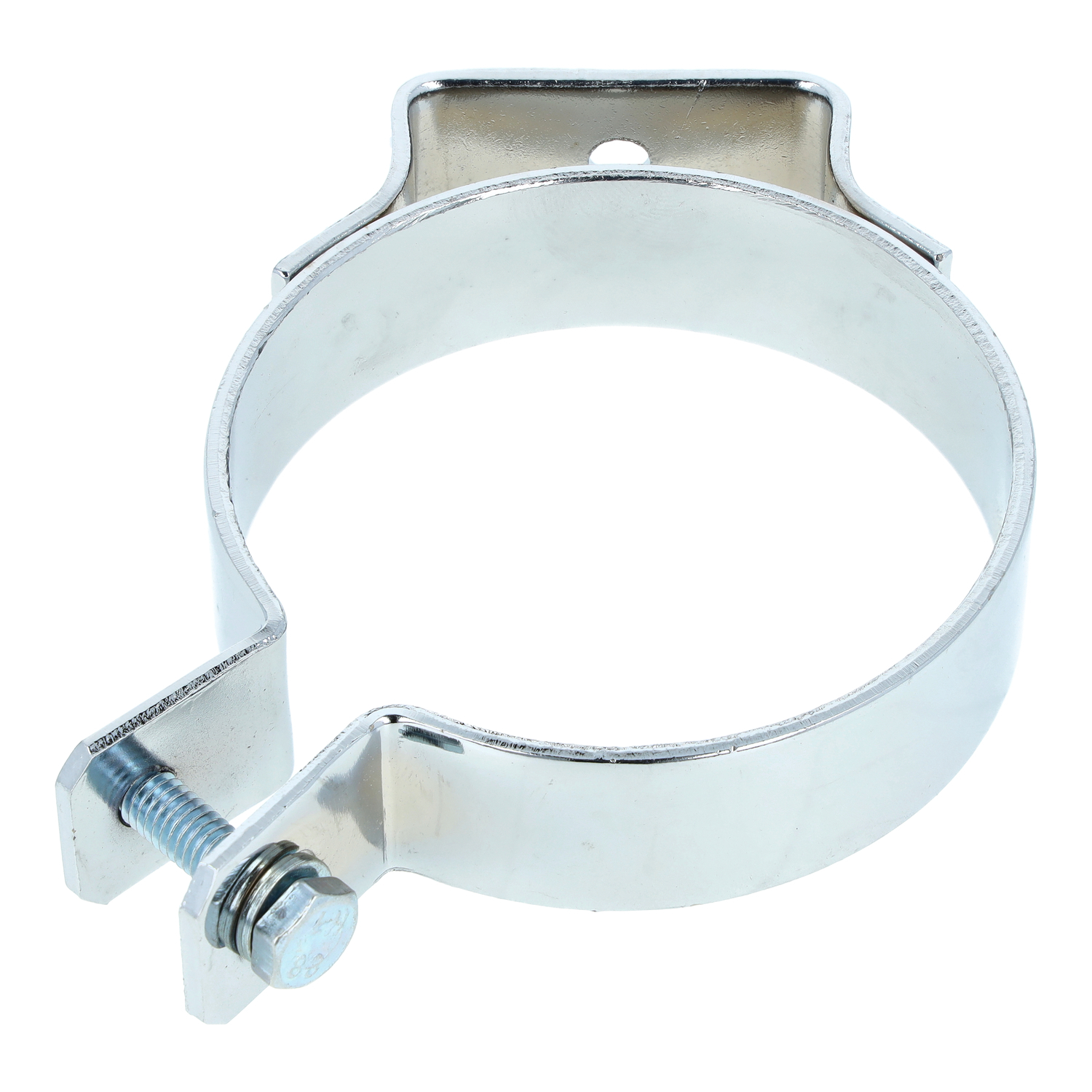 Tragschelle verchromt. Auch als Auspuffschelle oder Spannschelle bezeichnet.