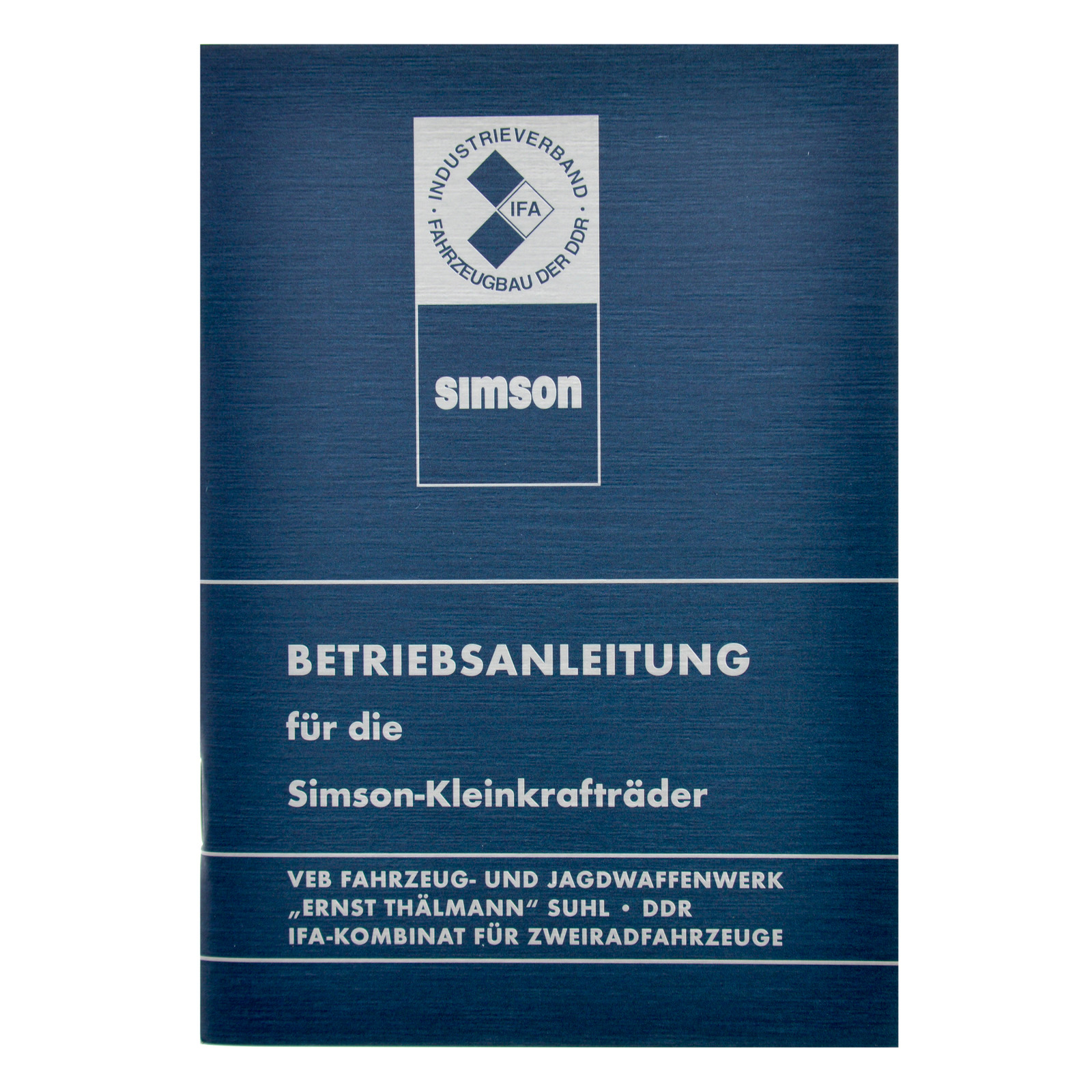 Betriebsanleitung für die Simson-Kleinkrafträder. Beinhaltet Bedienungsanleitung, Serlbsthilfe, Pflegetips. 4.Auflage mit 19 Bildern. Ausgabe 1981. 48 Seiten. Schwarz/Weiß Druck.