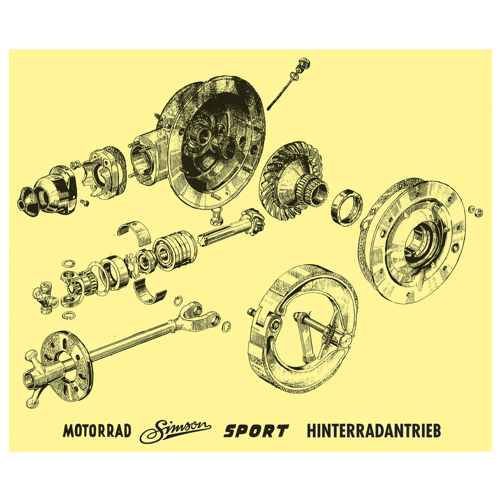 Darstellung des Hinterradantriebes (Kardan) vom Motorrad AWO Sport.