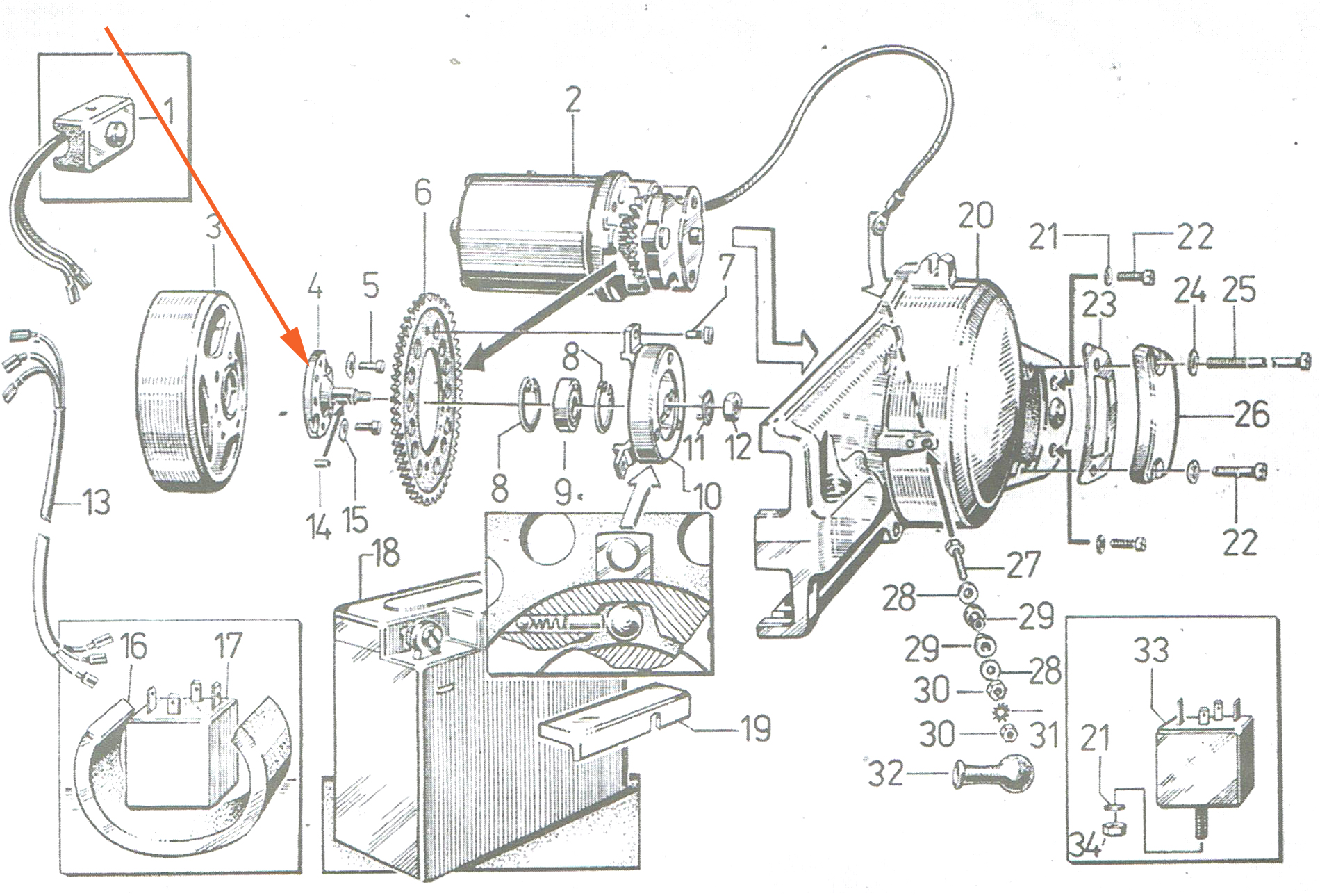 Wird mit dem Rotor verschraubt und nimmt das Anlasserrad auf