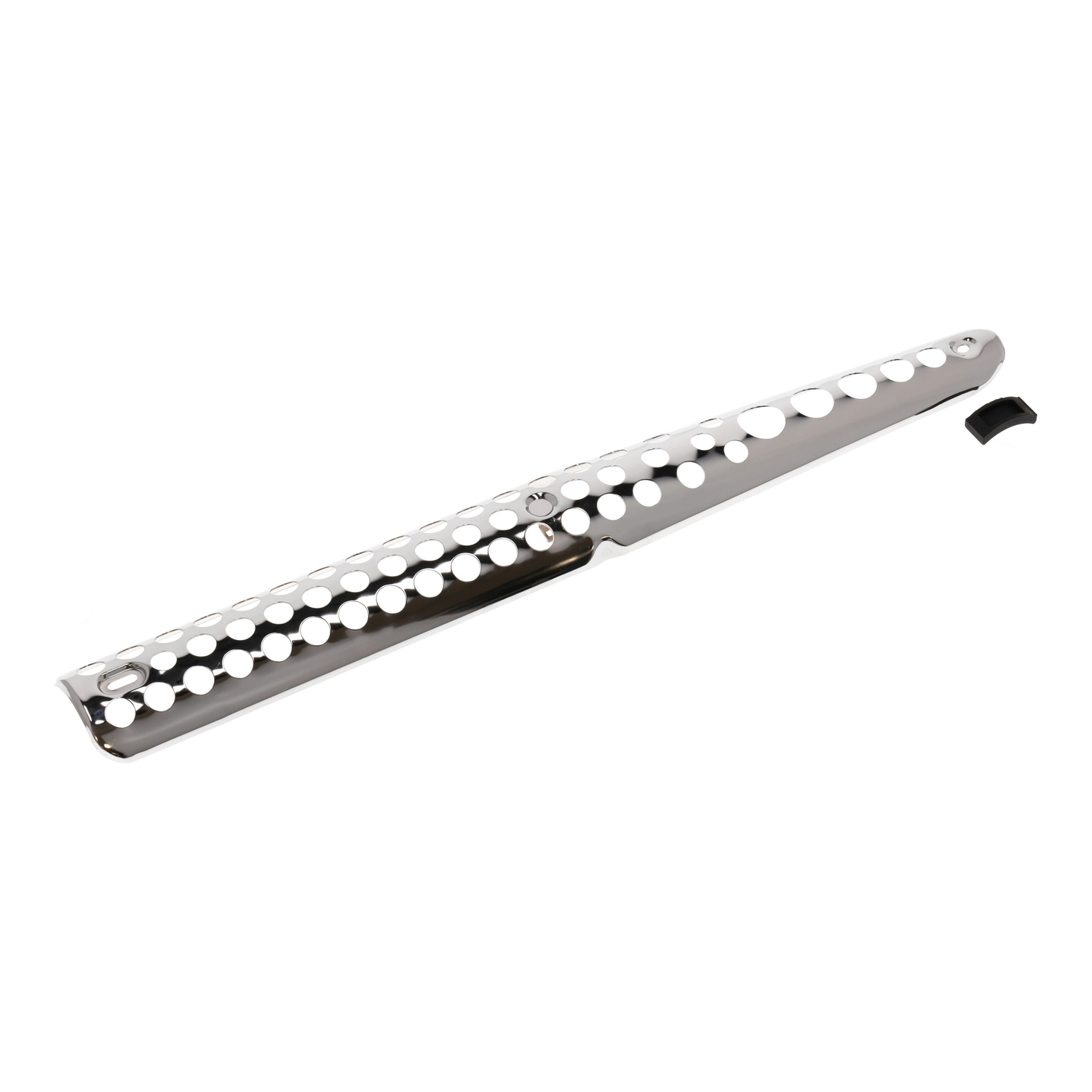 Hitzeschutz für Auspuff. Inklusive Gummi-Zwischenlage. Die Ausführung ist verchromt.