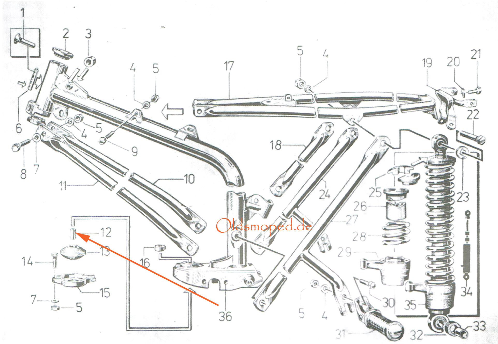 Außerdem verwendet beim SL1, SR2E Schwinge vorn (Hülse innere), Federbein (Innenrohr) SR4-1, SR4-2.
