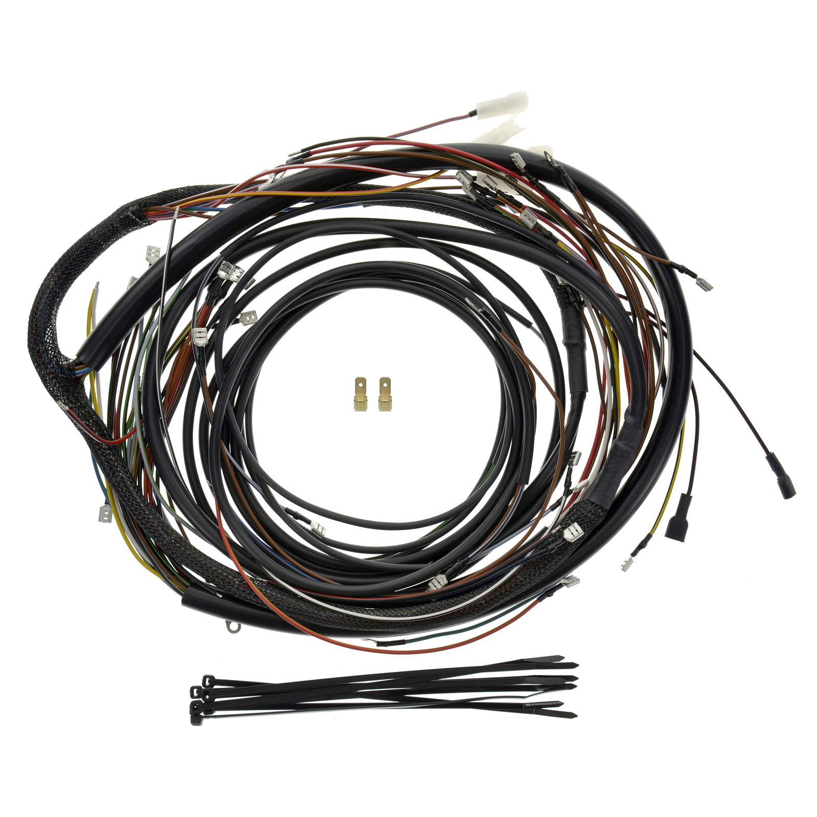 Kabelbaum, auch als Kabelsatz bezeichnet. Inklusive Schaltplan in Farbe. Originale Kabelfarben und Leitungsquerschnitte.Kabelschuhe sind angepresst und verlötet. Passend für das Krankenfahrzeug DUO 4/1.