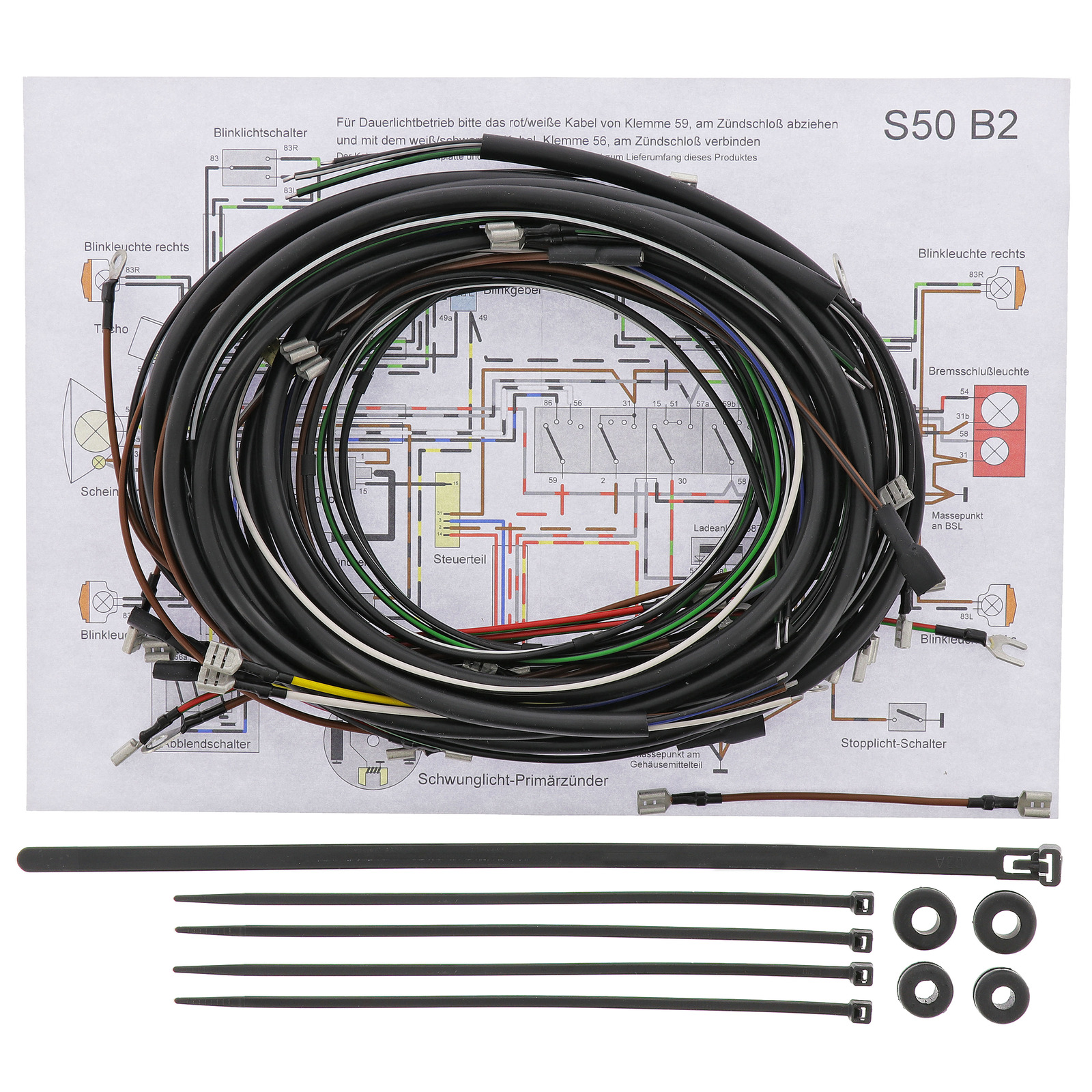 Kabelbaum, komplett mit Schaltplan. Auch als Kabelsatz bezeichnet.