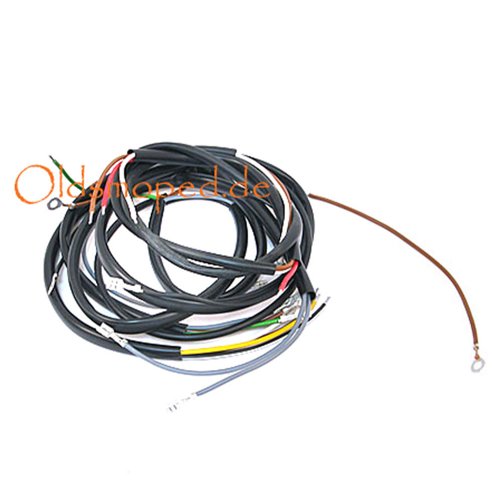 Kabelbaum mit schwarzer Hülle. Der Kabelsatz ist komplett mit Schaltplan. Der Artikel ist passend für das Simson Moped vom Typ SR4-1 (Spatz).