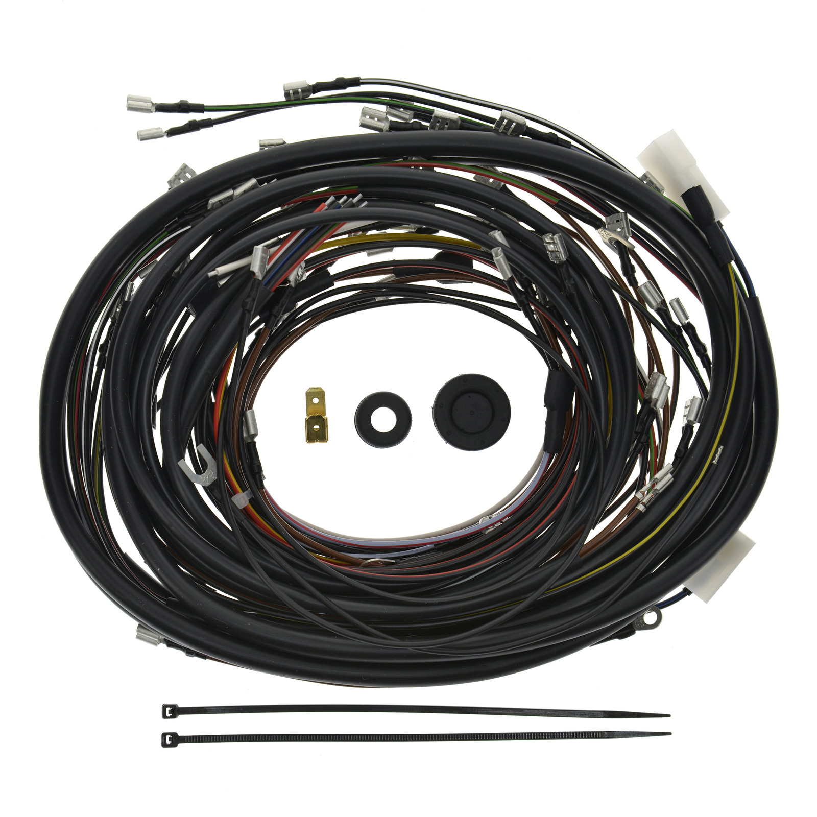 KWO Kabelbaum, komplett mit Schaltplan. Wird auch als Kabelsatz bezeichnet. Originale Kabelfarben und Querschnitte. Kabelschuhe verpresst und verlötet. Passend für den Simson Roller SR50 B4 6V.