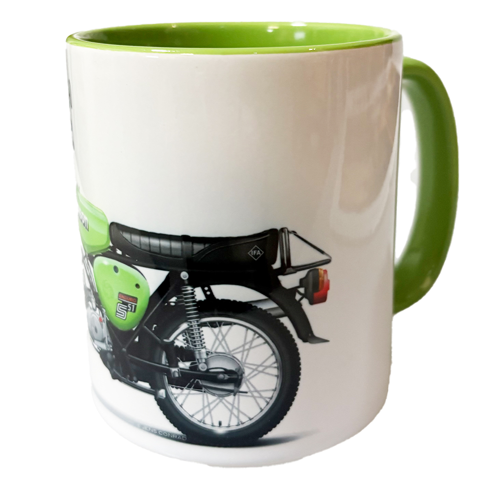 Tassenkörper Weiß, Henkel und Innenfläche Hellgrün.