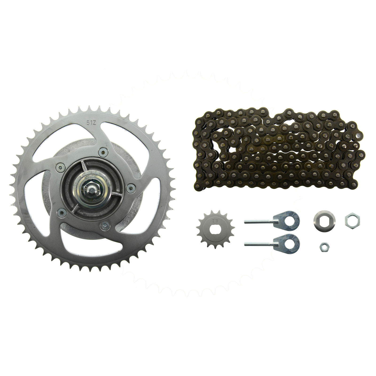 Kettensatz mit Kleinteilen. 8-teiliges Antriebsset.