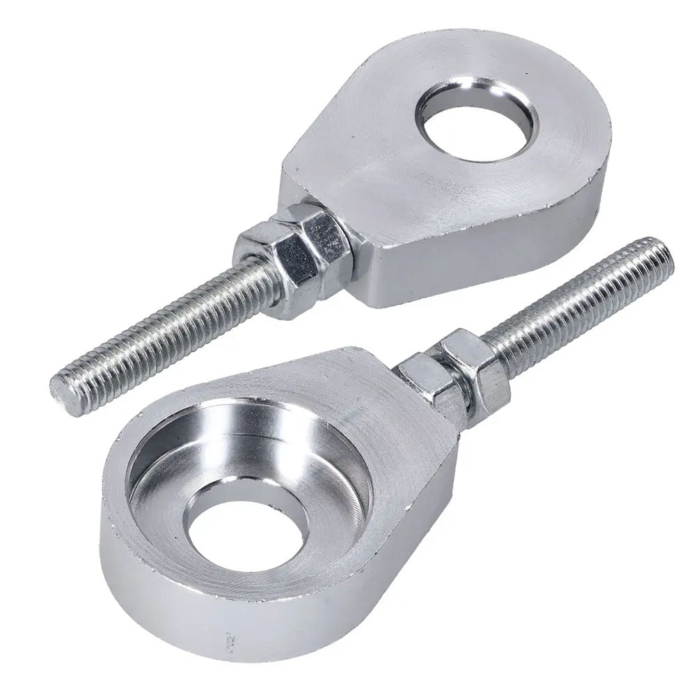 Kettenspanner für Schwinge. Material Aluminium (Silber eloxiert).