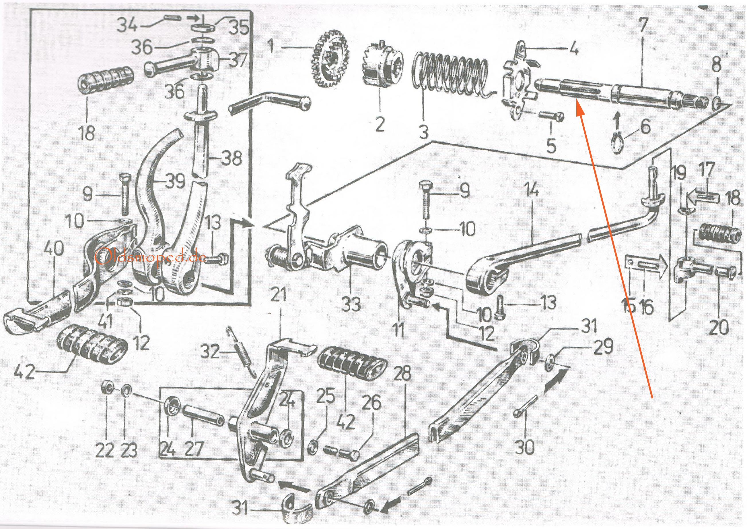 Kickstarterwelle. Der Rundring (O-Ring) ist bereits montiert.
