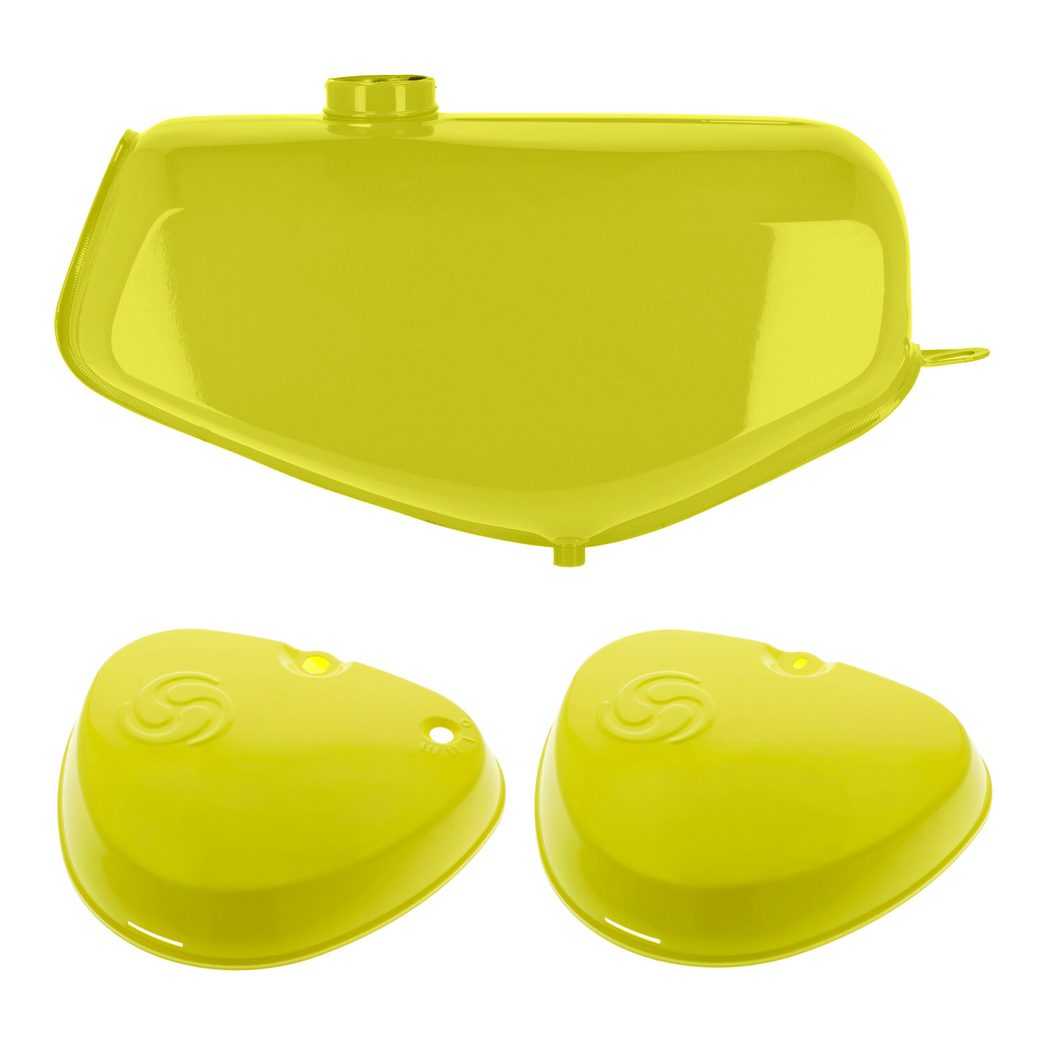 Set Kraftstoffbehälter mit beiden Seitendeckeln in lackierter Ausführung – Farbe: rapsgelb.