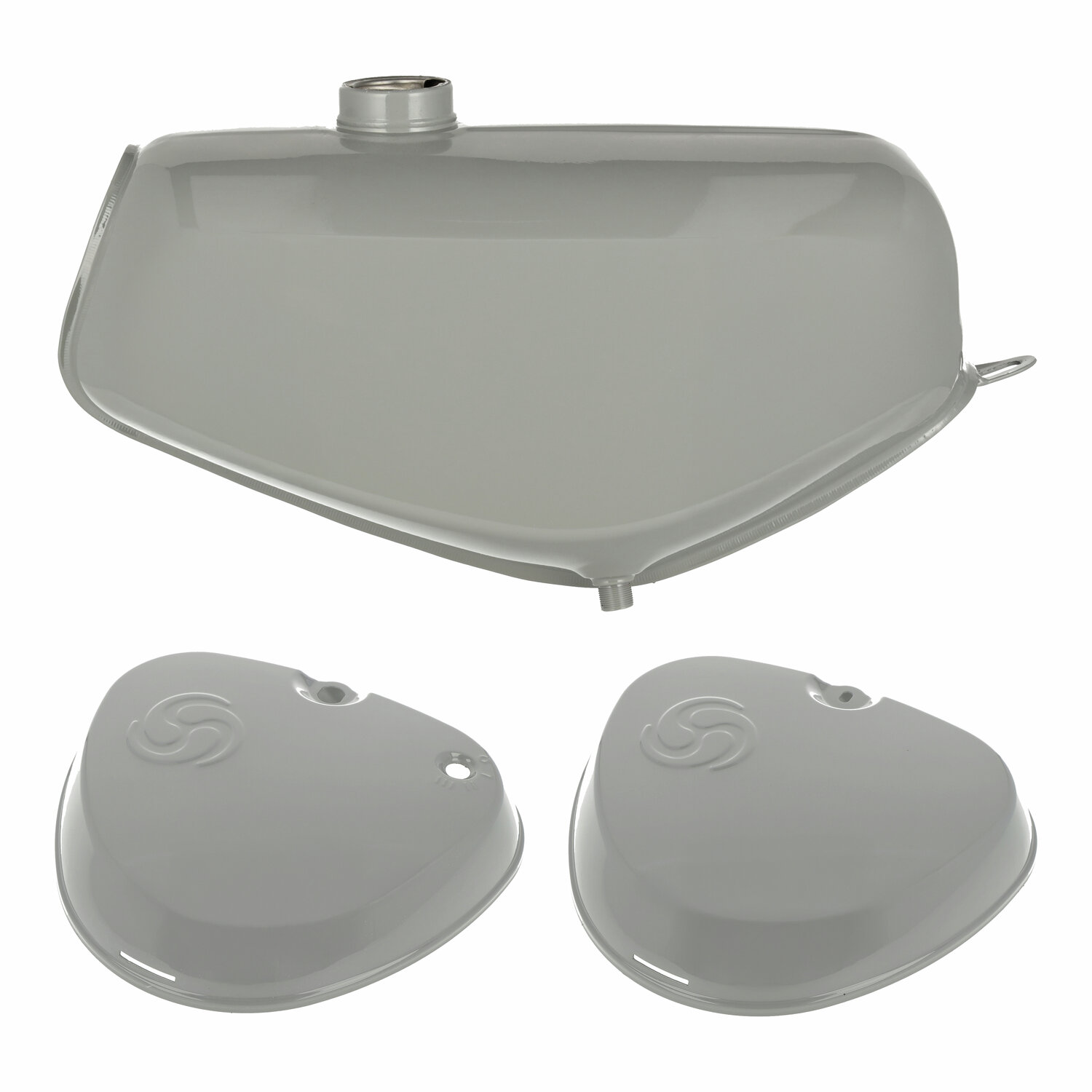 Set Kraftstoffbehälter mit beiden Seitendeckeln in lackierter Ausführung – Farbe: Staubgrau.