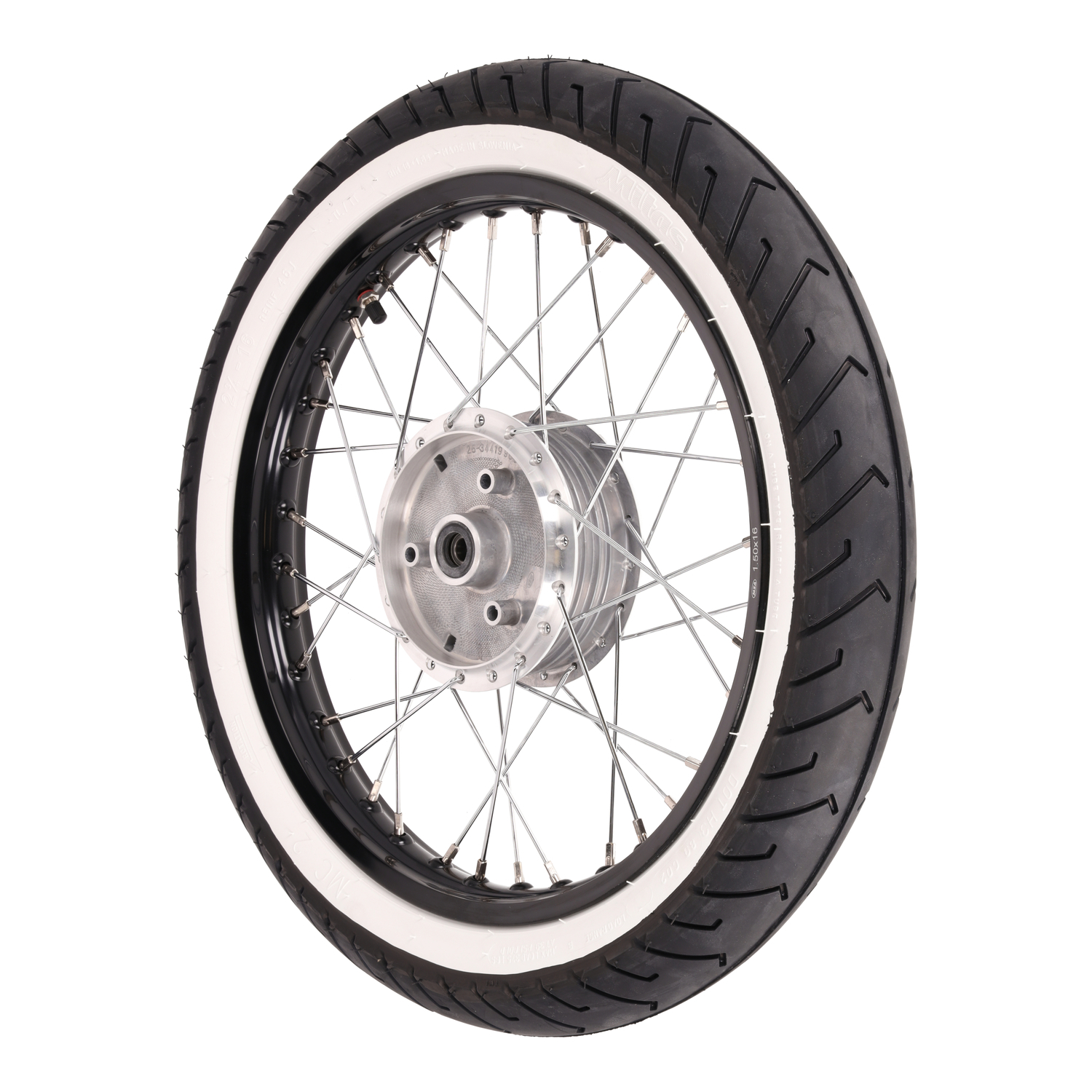 Komplettrad, Alufelge schwarz (vorn) 1,50x16 mit Weißwandreifen, Simson S50, S51, S53, DUO, KR51, SR4-2, SR4-3, SR4-4