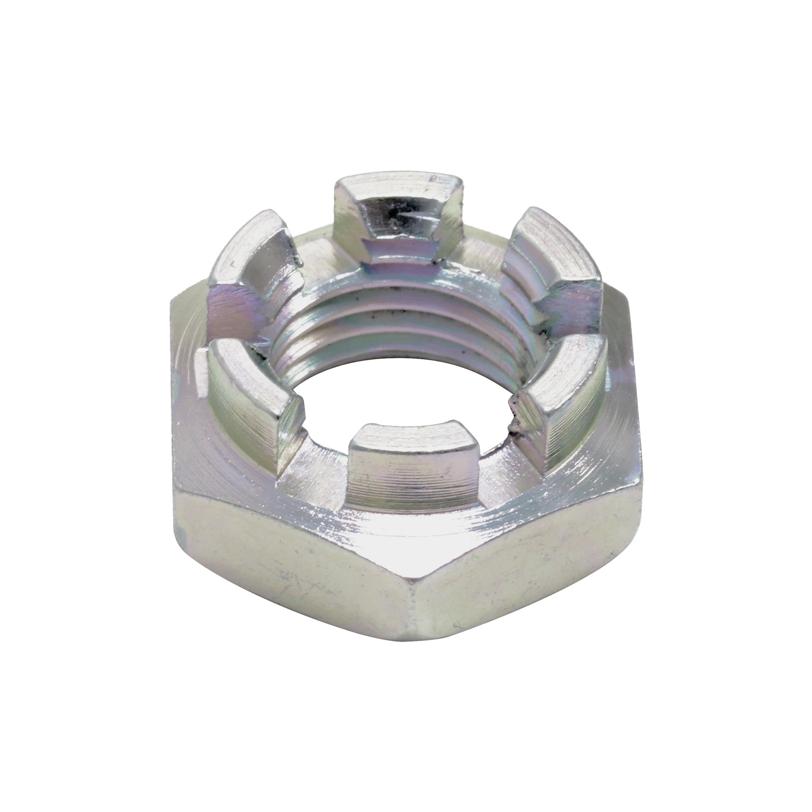 Kronenmutter (M10x1,5). Auch als ''Flache Kronenmutter M 10, DIN 937'' bezeichnet.