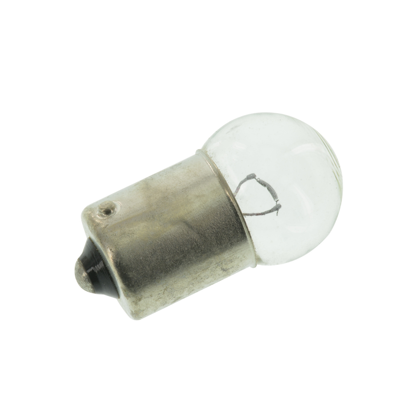 Kugellampe mit kleinem Kopf. Gesamthöhe ca. 35mm. Sockel BA15s. Wird auch als Glühlampe oder Birne bezeichnet.
