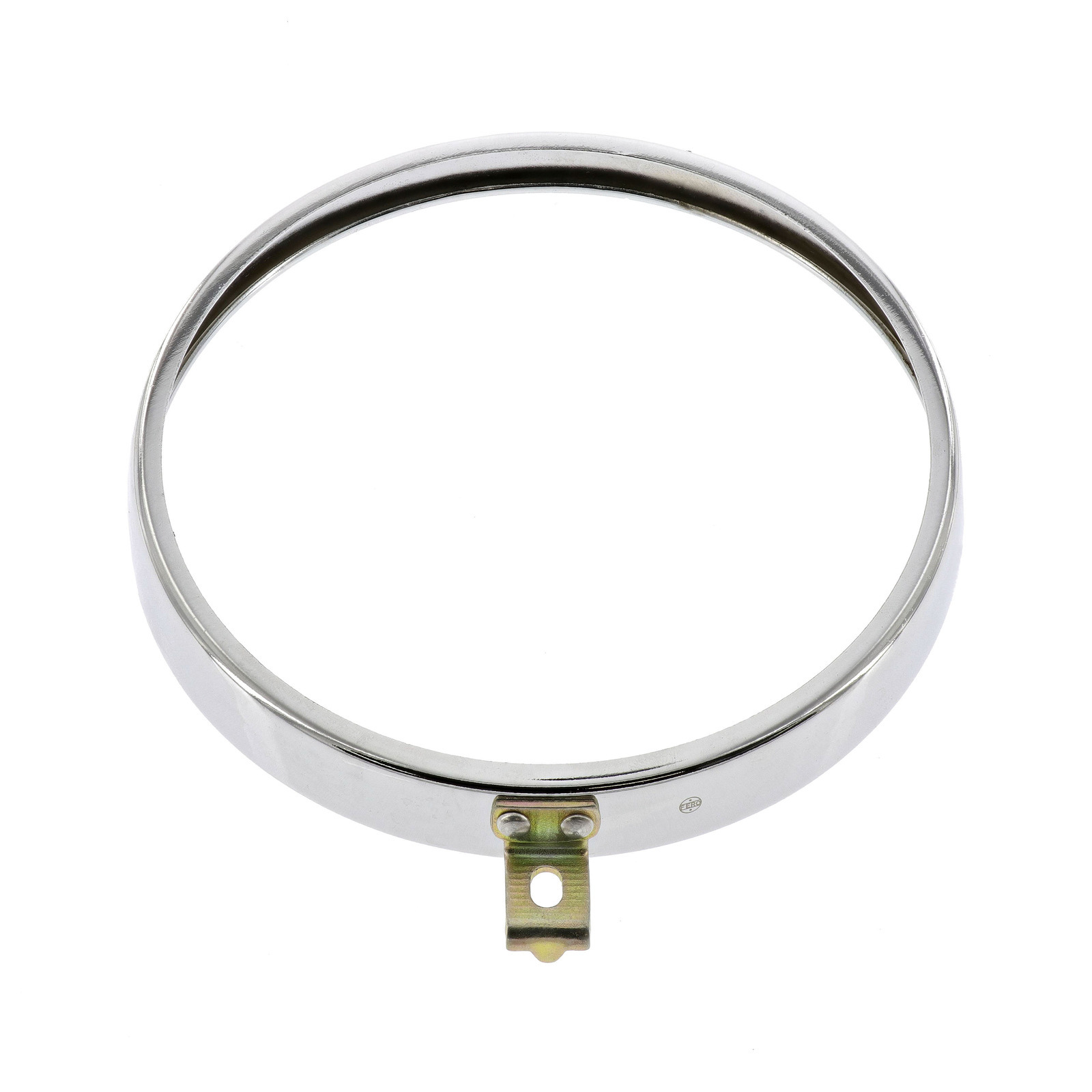 Scheinwerferring, verchromt. Wird auch als Frontring, oder Lampenring bezeichnet. Der Ring ist ca. 2,5cm hoch. Für die Kugellampe. Passend für das Simson Moped vom Typ S50.