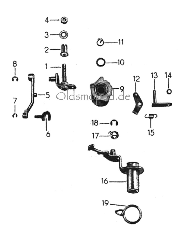 Fig. 1: Lagerwinkel Fig. 2: Schlitzmutter Fig. 3: Scheibe 8,4 Fig. 4: Sechskantmutter M8 Fig. 5: Schwenkhebel Fig. 6: Schaltgabel Fig. 7: Sicherungsscheibe 4 Fig. 8: Sicherungsscheibe Fig. 9: Schaltwalze Fig.10: Anlaufscheibe Fig.11: Sicherungsring 12 Fig.12: Rasthebel Fig.13: Lasche Fig.14: Hülse Fig.15: Zugfeder Fig.16: Schalthebel Fig.17: Schaltklinkenfeder Fig.18: Sicherungsscheibe 7 Fig.19: Schaltfeder
