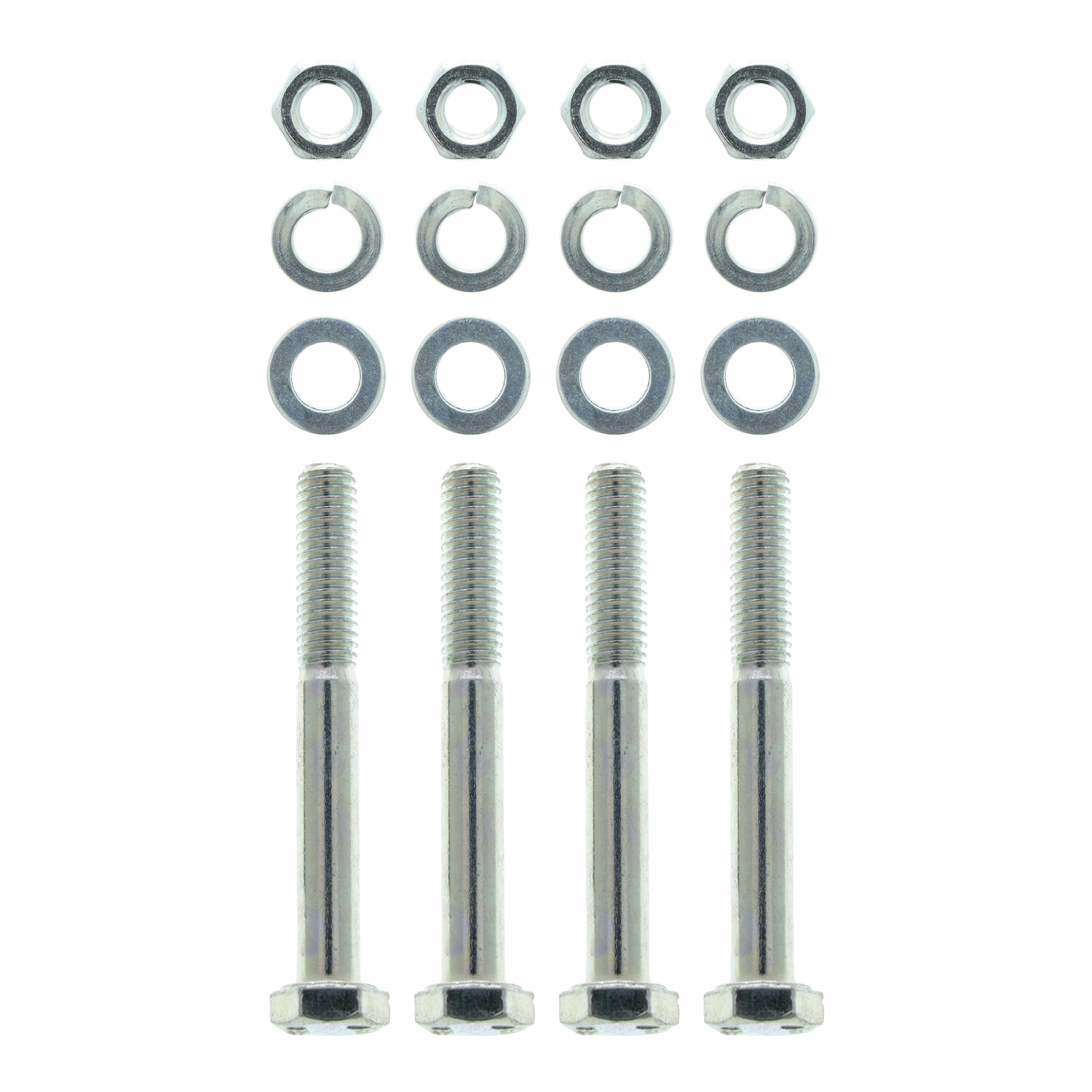 Bestehend aus den 4 Schrauben M6 in richtiger Länge, Unterlegscheiben, Federringen und Muttern.