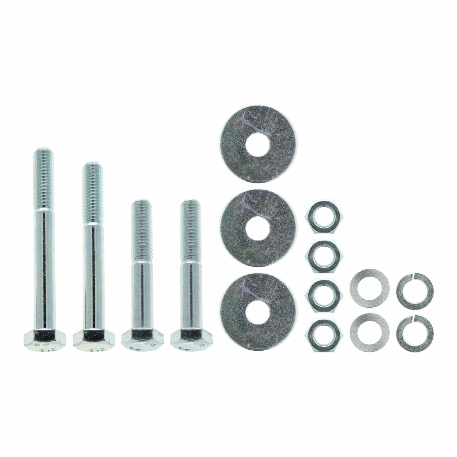Komplett mit extra großen Unterlegscheiben, Federscheiben und Muttern.
