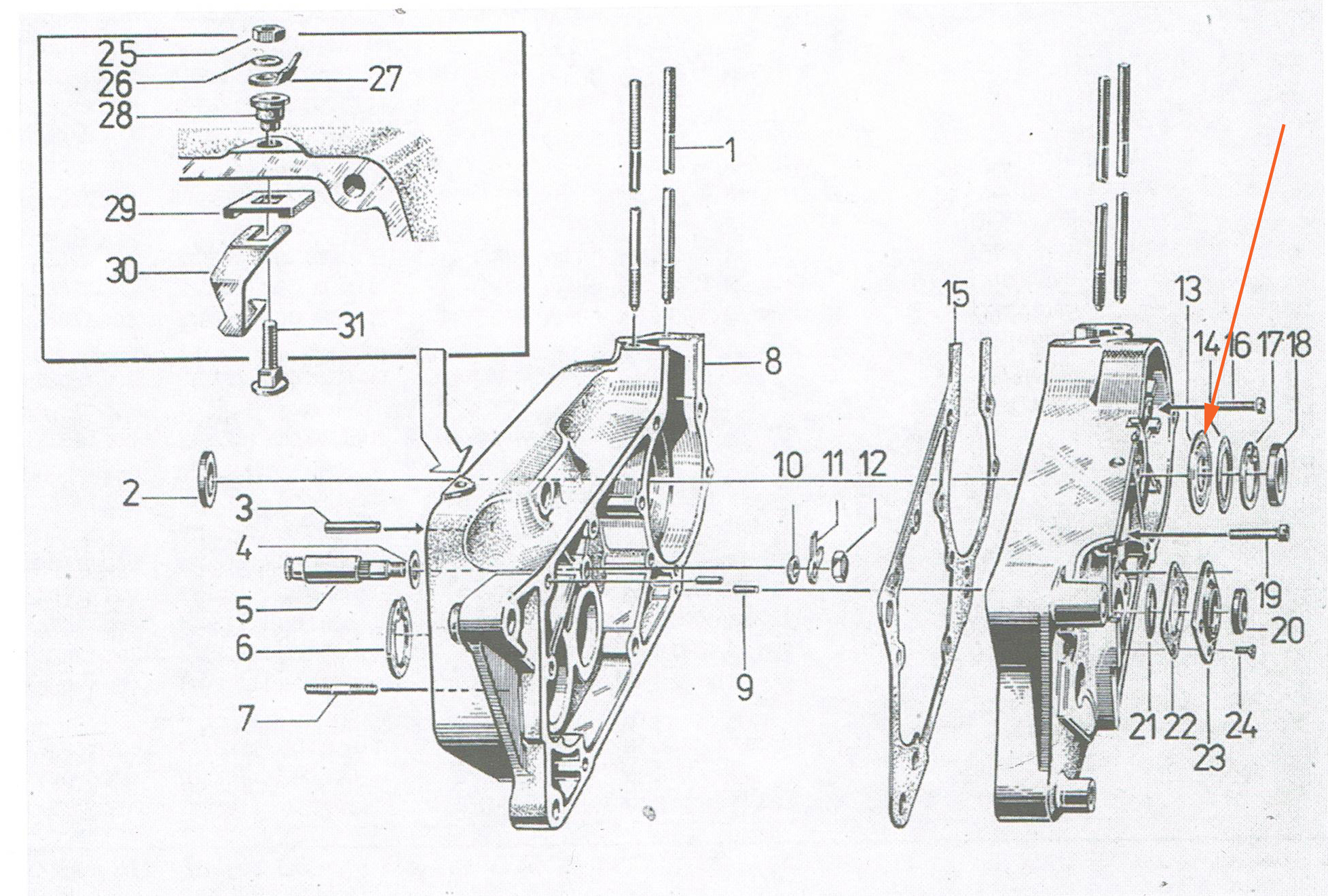 Ölleitscheibe am Kurbelwellenlager Rechts.