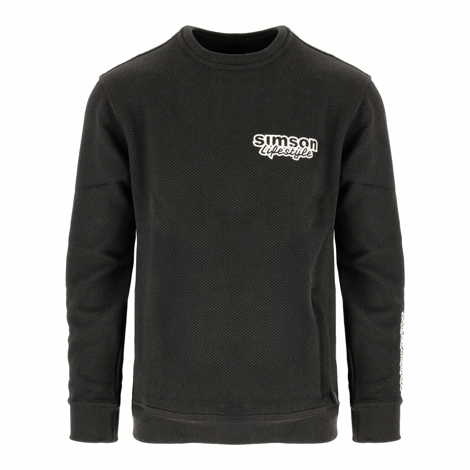 Mit Aufdruck "SIMSON Lifestyle" Logo in beige, klein auf der Brust und "Kleinkrafträder aus Suhl" auf dem Ärmel.