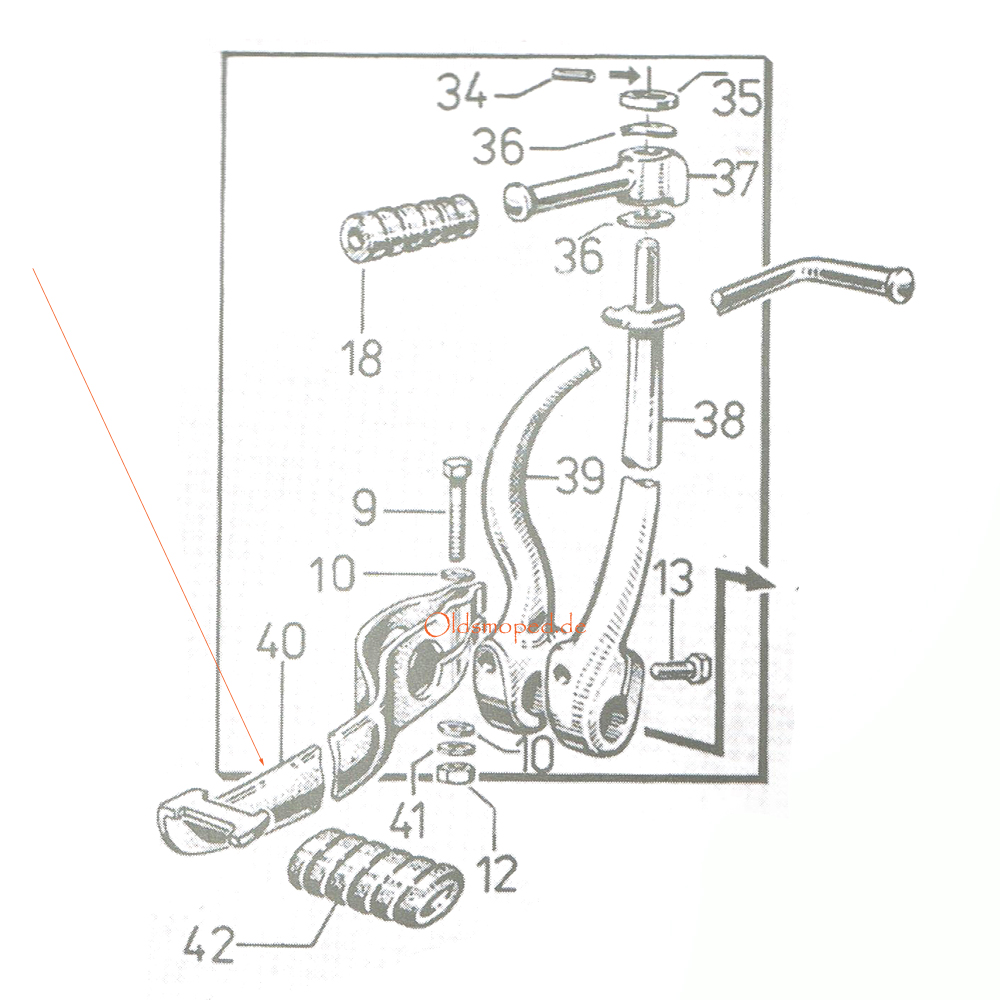 Schalthebel. Auch als Fußschalthebel bezeichnet.