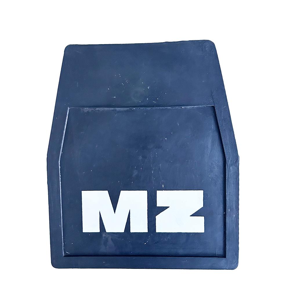 Schmutzfänger. Gummi. Schwarz.Aufdruck MZ (Weiß). Gesamtlänge (Höhe) ca. 22cm. Breite oben 14,5, unten ca. 19cm. Passend für MZ und auch für Seitenwagen.