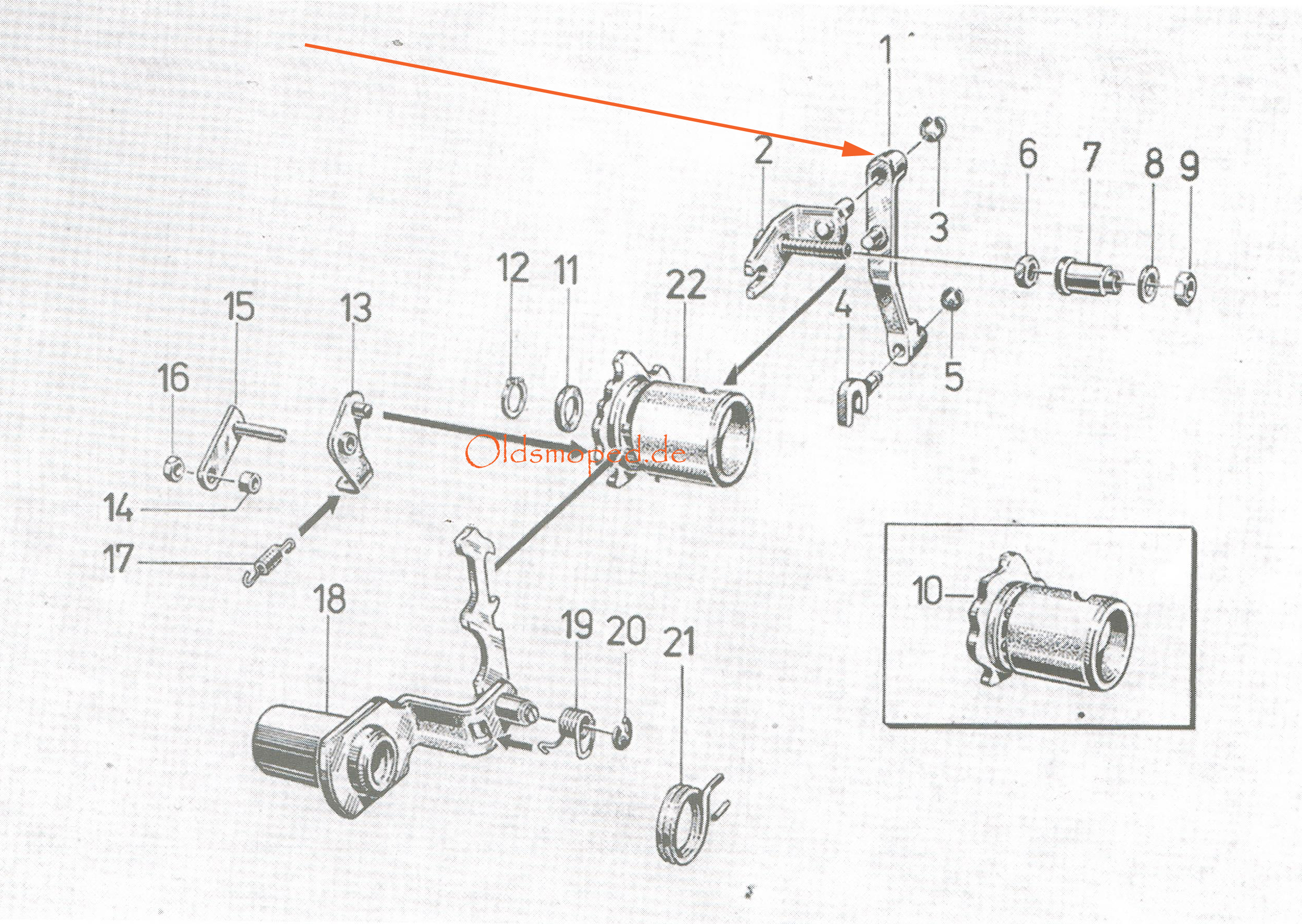 Schwenkhebel für die Schaltung. Passend für die Simson Mopeds S51, S53, S70, SR50, KR51/2, MS50. Die original Ersatzteilnummer ist die 226902.