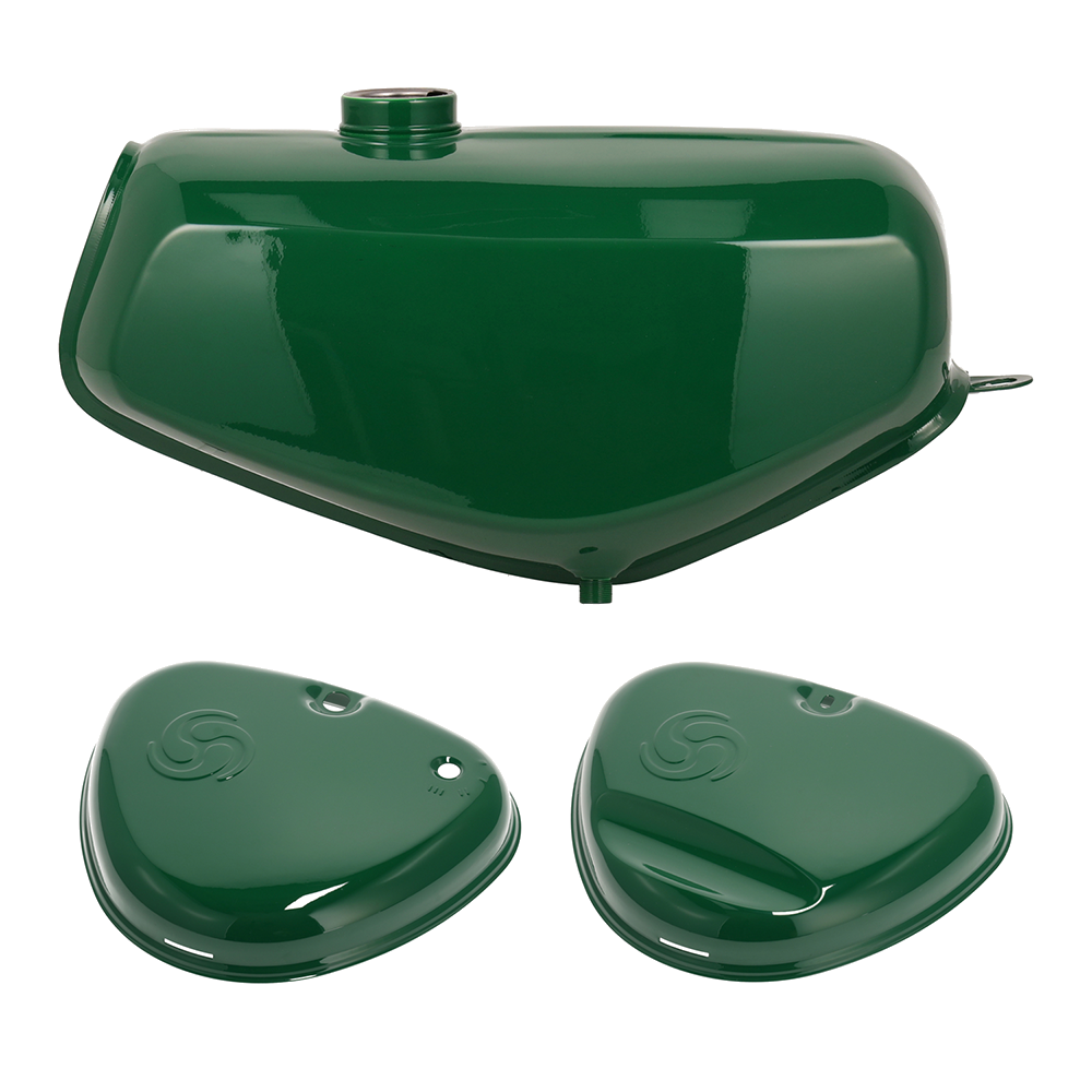 Set Kraftstoffbehälter mit beiden Seitendeckeln in lackierter Ausführung. Farbe: billardgrün.