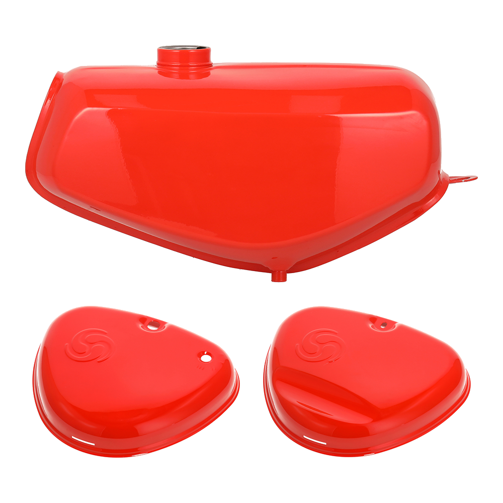 Set Kraftstoffbehälter mit beiden Seitendeckeln in lackierter Ausführung. Farbe: flammenrot.