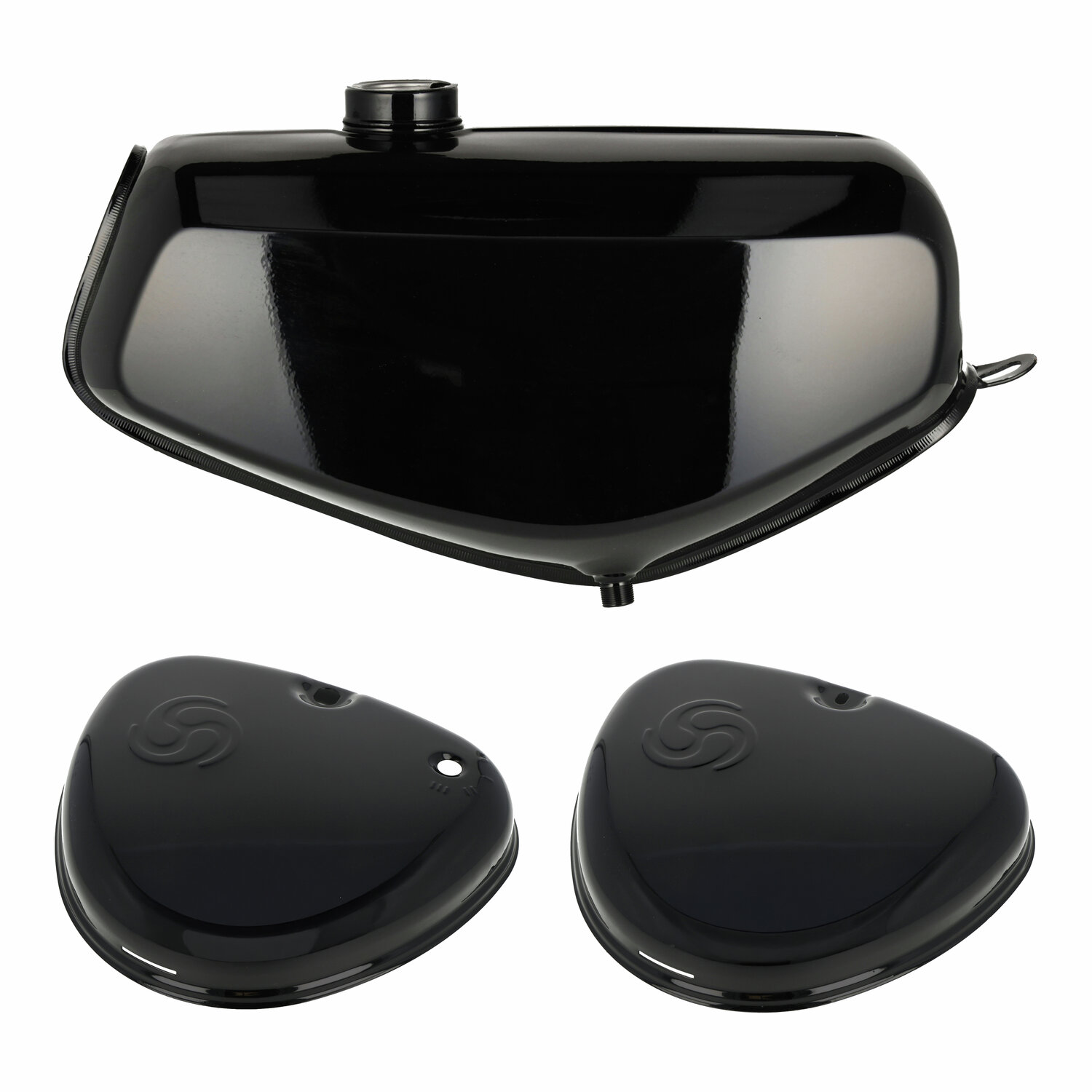 Set Kraftstoffbehälter mit beiden Seitendeckeln in lackierter Ausführung – Farbe: Schwarz.