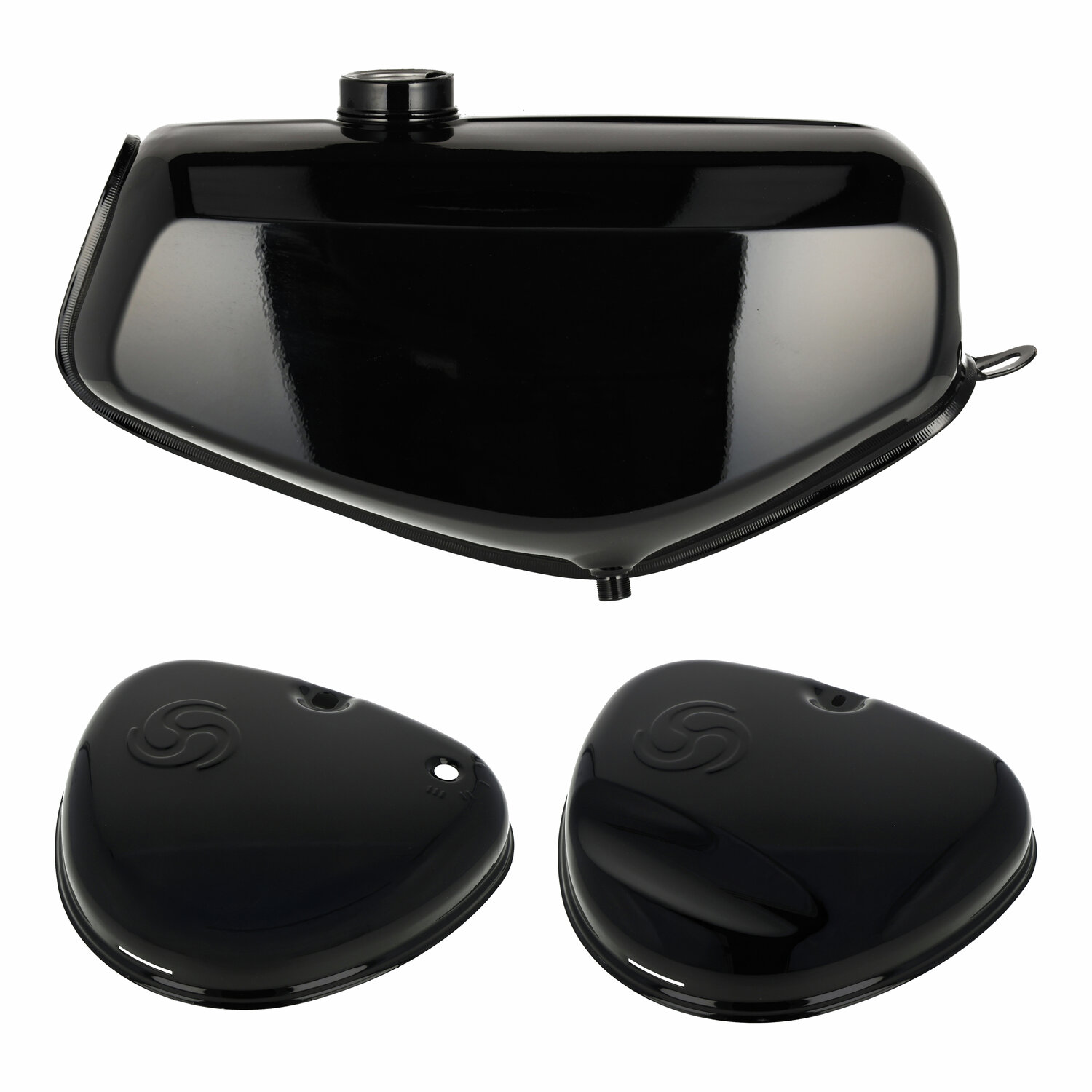 Set Kraftstoffbehälter mit beiden Seitendeckeln in lackierter Ausführung – Farbe: Schwarz.