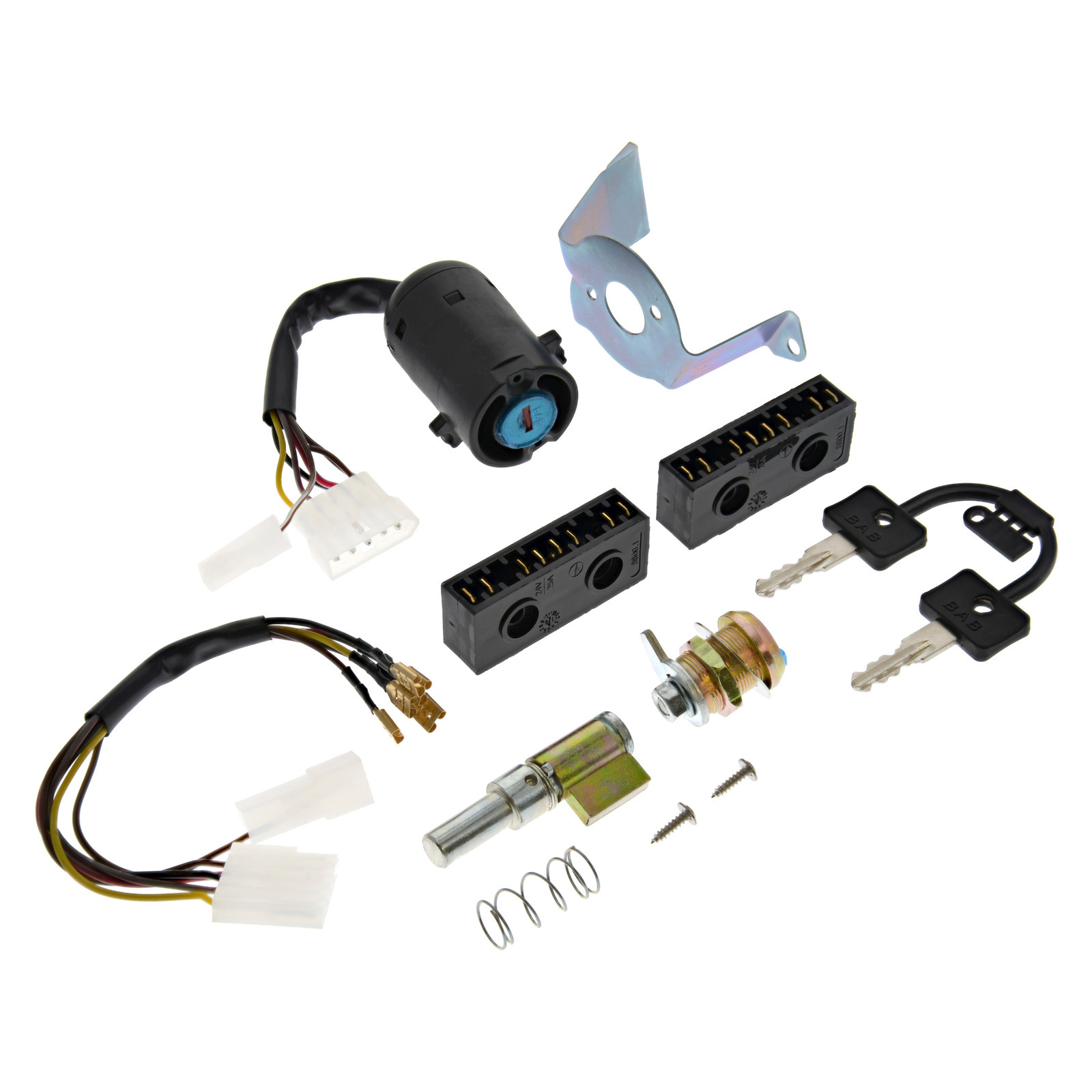 Lenkersperrschloß schmale ("lange") Ausführung, Seitendeckelschloß, Kabelbaum, Klemmbrücken.