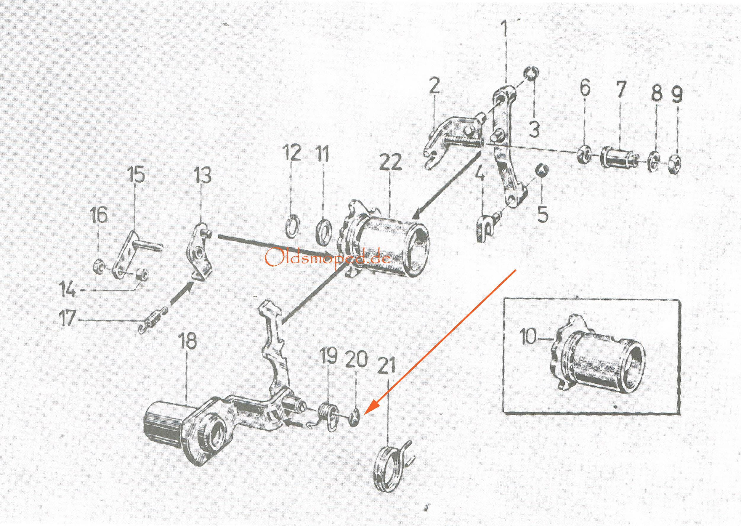 Sicherungsscheibe für die Schaltklinkenfeder. Die Katalogbezeichnung ist SiS 7 TGL 0-6799.