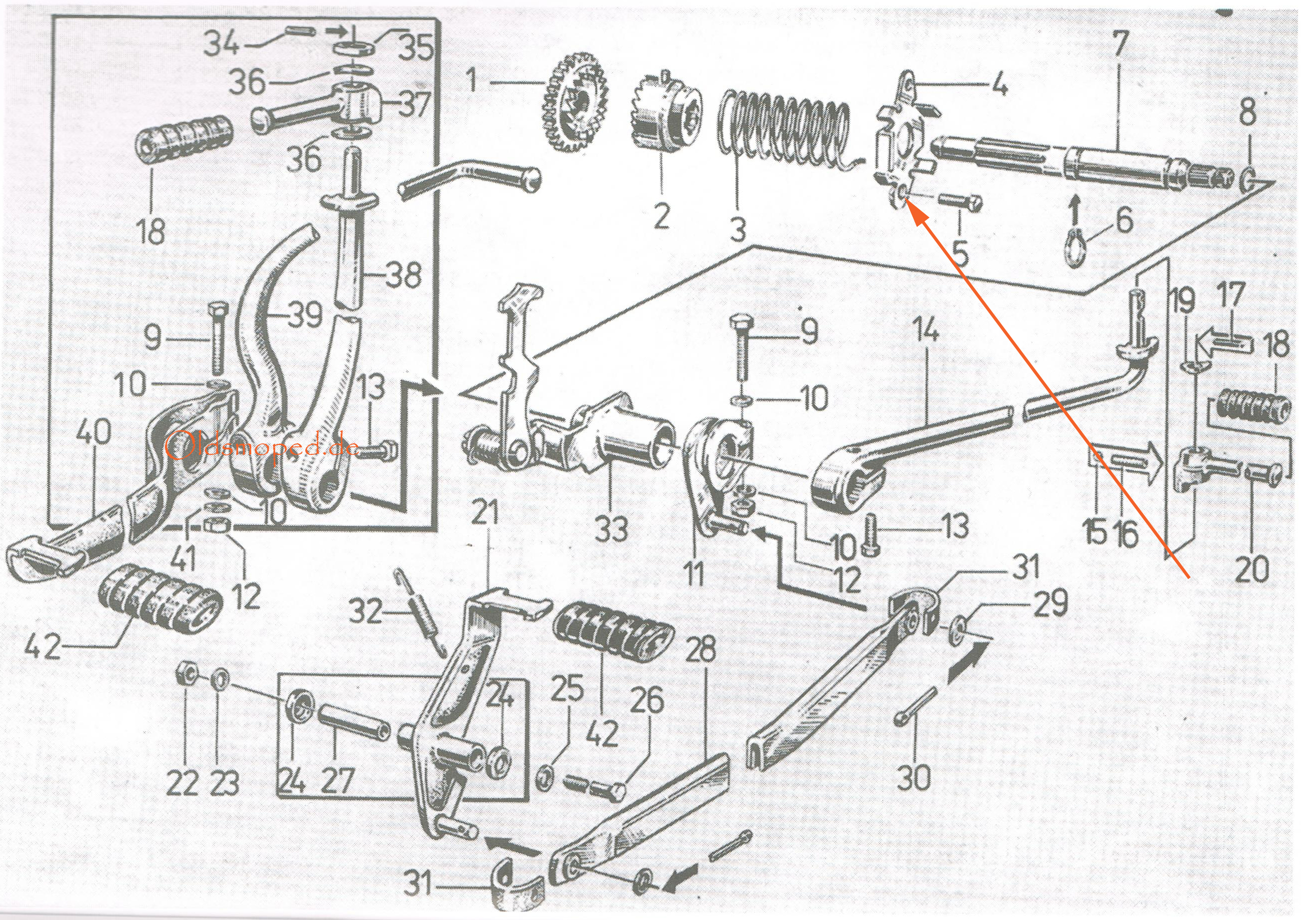 Spannblech für die Kickstarterfeder. Passend für die Simson Mopeds S51, SR50, SR80, KR51/2, S70, S53, MS50. Die original Ersatzteilnummer ist die 227951.