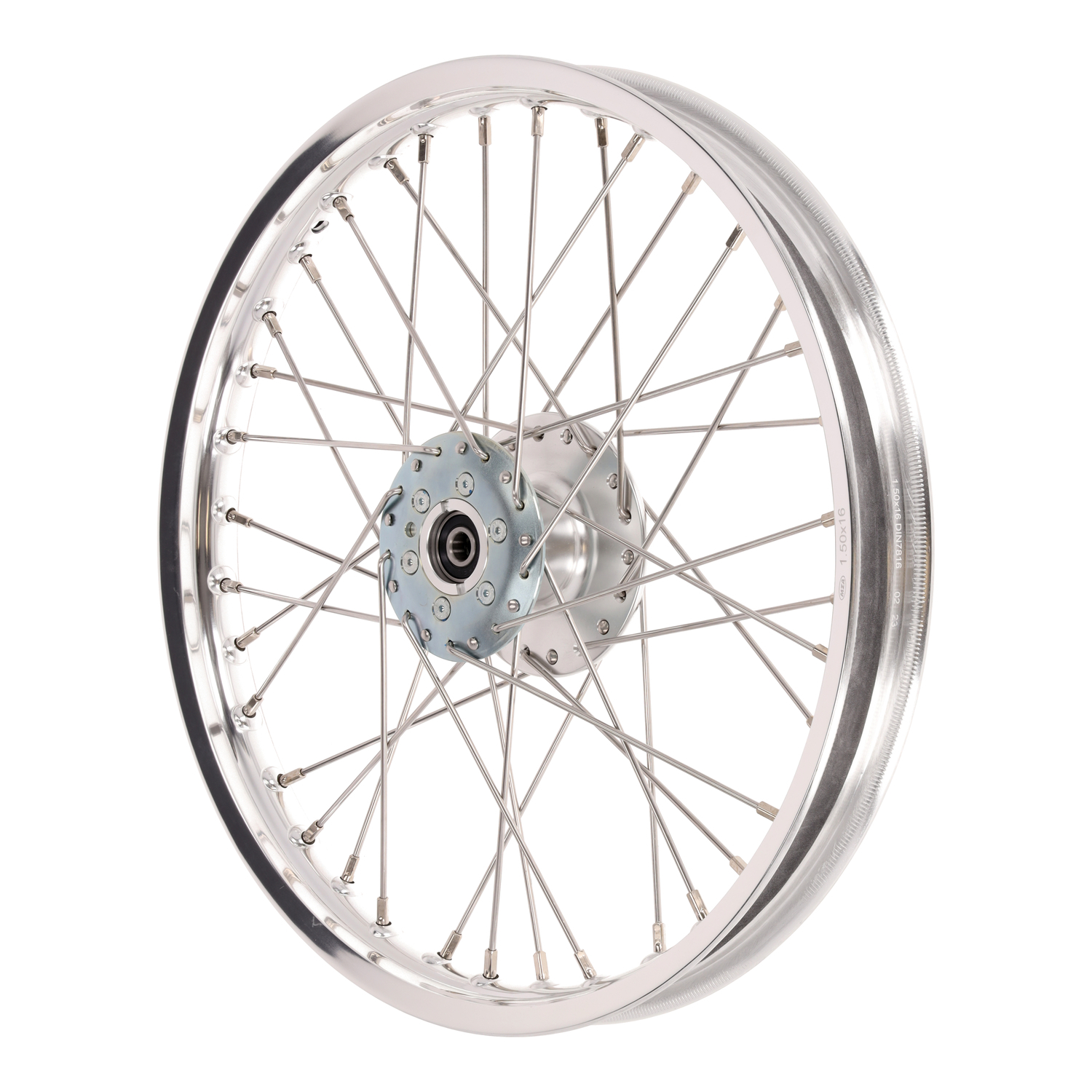 Speichenrad 1,5x16 Zoll. Nabe Silber, für Scheibenbremse. Aluflelge und Edelstahlspeichen. Passend für Simson S51, S53, S70, S83.