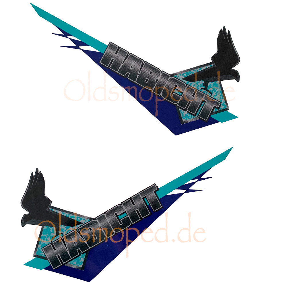 Die Klebefolie trägt den Schriftzug "Habicht". Mehrfarbiger Druck.