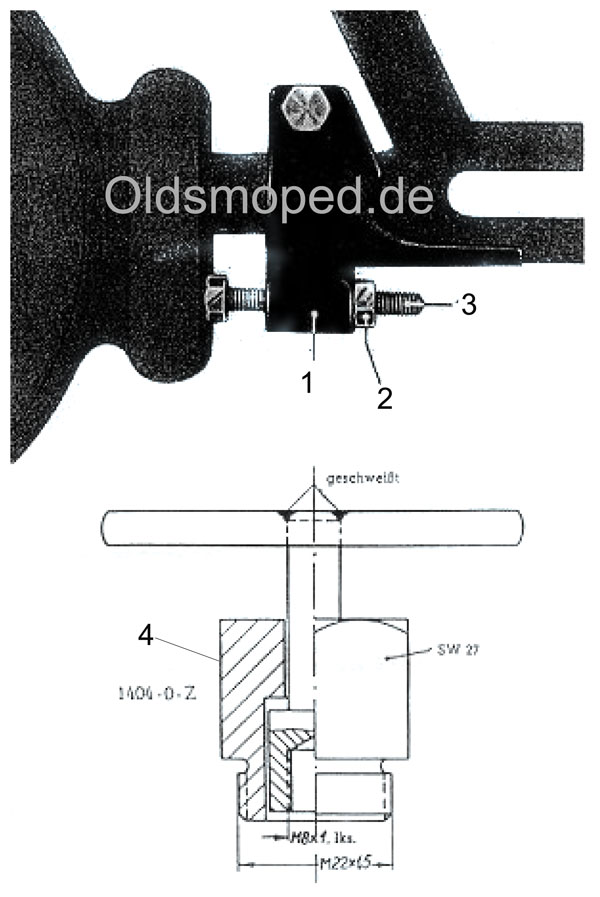 Fig 1: Blockschelle, komplett kettenspanner (1400-O-Z) Fig 2: Sechskantmutter M6 (1403-O-Z) Fig 3: Sechskantschraube M6x45 (1402-O-Z) Fig 4: Abzieher für Schwungscheibe (1404-O-Z) Artikel nur zur optischen Darstellung der Exlosionszeichnung - nicht bestellbar!