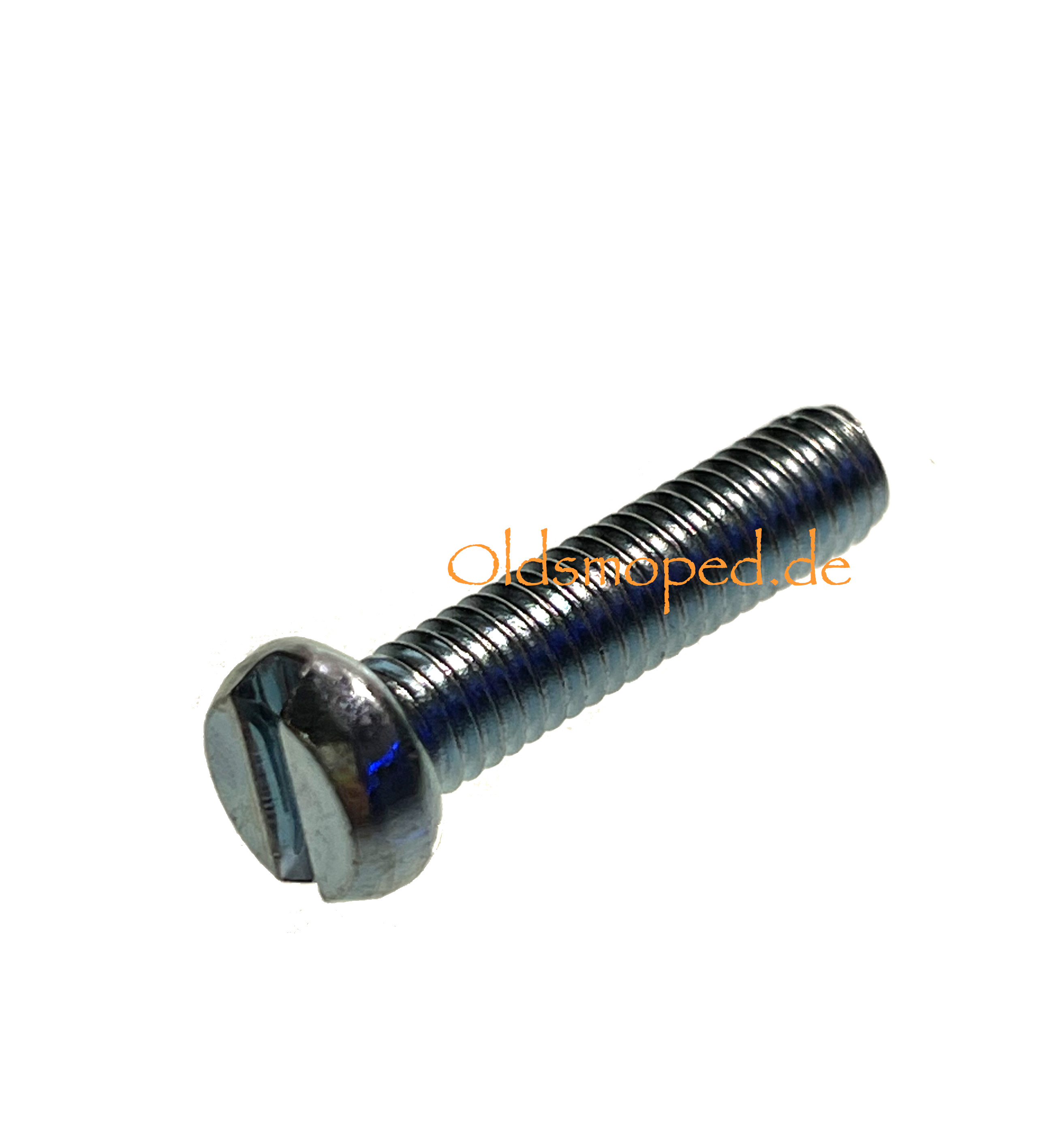 Zylinderschraube, verzinkt. Durchgehendes Gewinde. Festigkeitsklasse 4,8. Mit Schlitz. M6x25-4.8-A4K (DIN 84). Passend MAW-Motorgehäuse, Simson Moped Limadeckel.